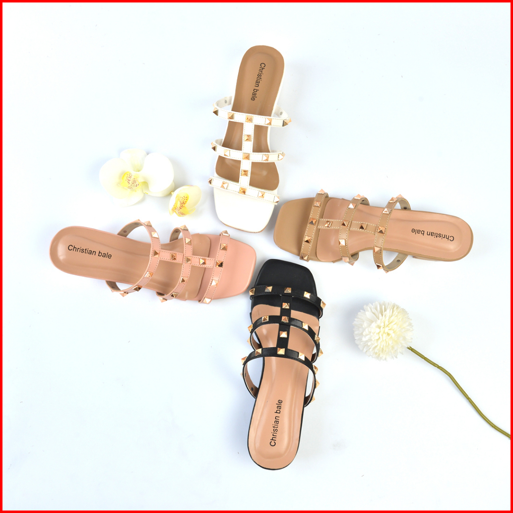 Christian Bale Nicole Sandal Tali Wanita Kekinian Sendal Hak Cewek Heels 3 Cm Model Paku Terbaru