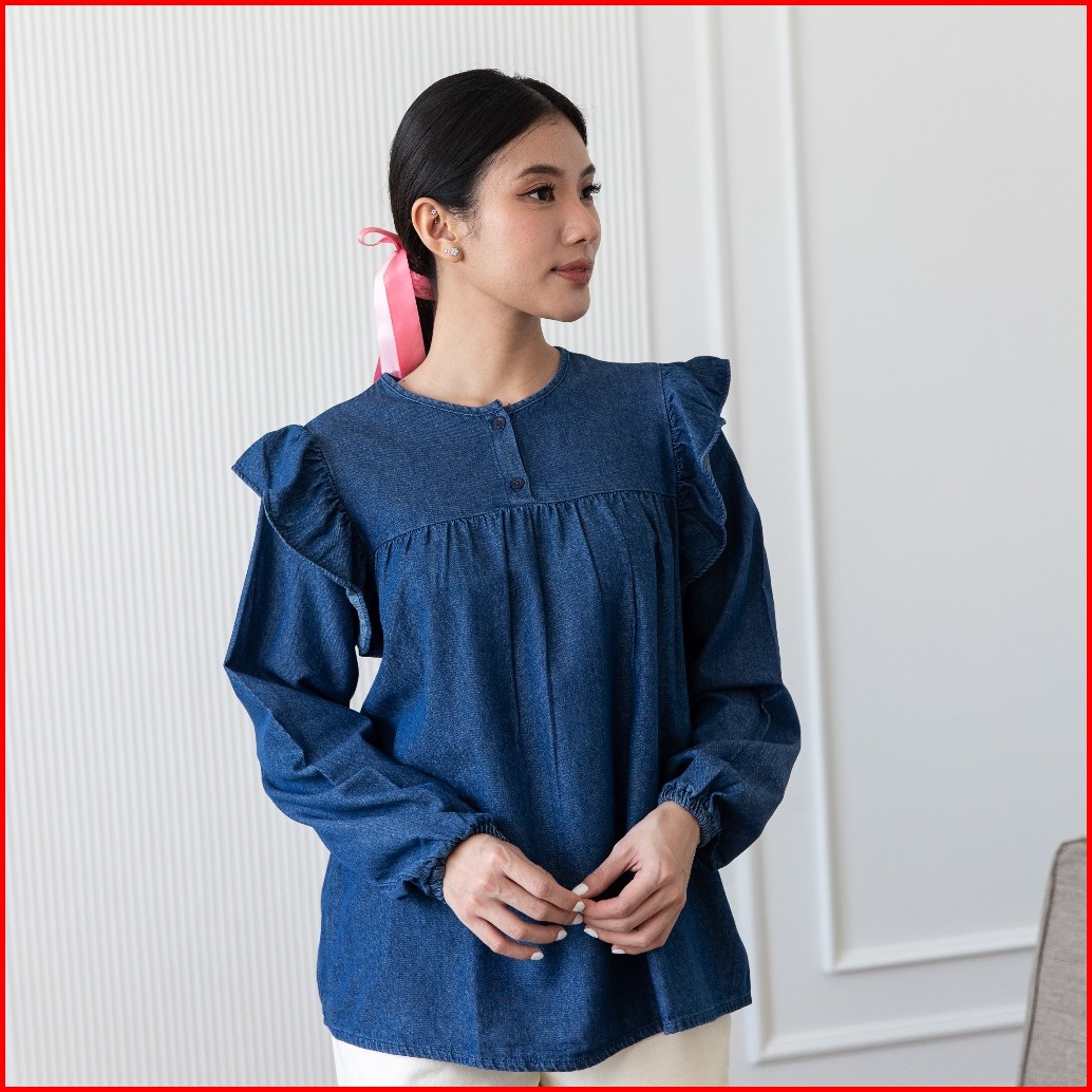 Ultraviolet Doyun Denim Blouse 336 2 Warna - Atasan Blus Denim Wanita Korean Style