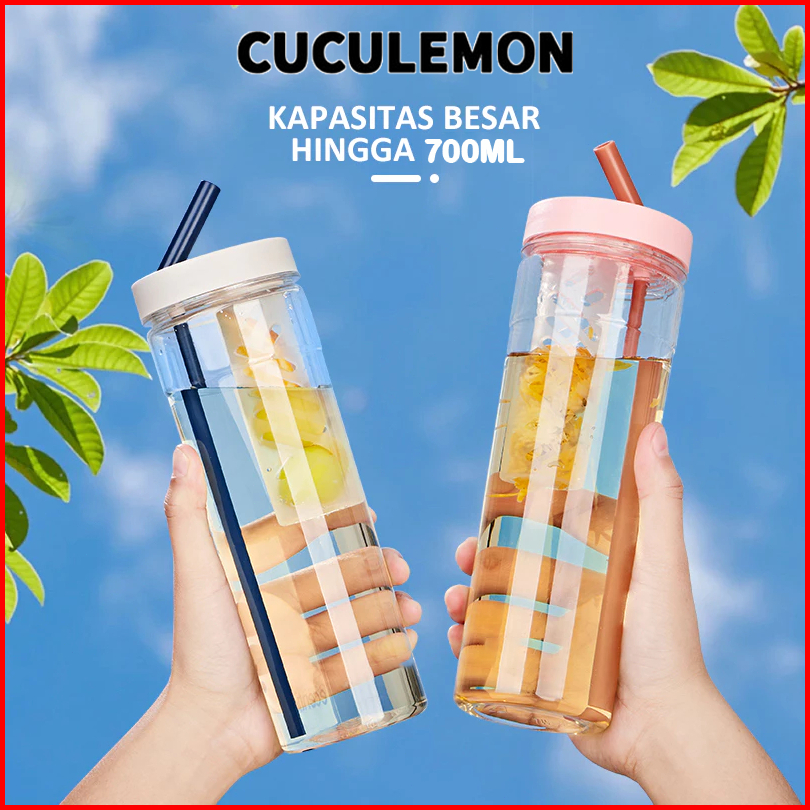 Cuculemon Botol Minum Transparan 700ml Kapasitas Besar Portable Botol Plastik Dengan Saringan