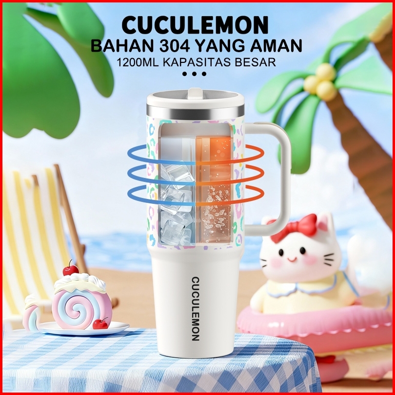 Cuculemon Tumbler Stainless Portable 1.2l Termos Vacuum Insulated Tahan Panas Dingin Kapasitas Besar