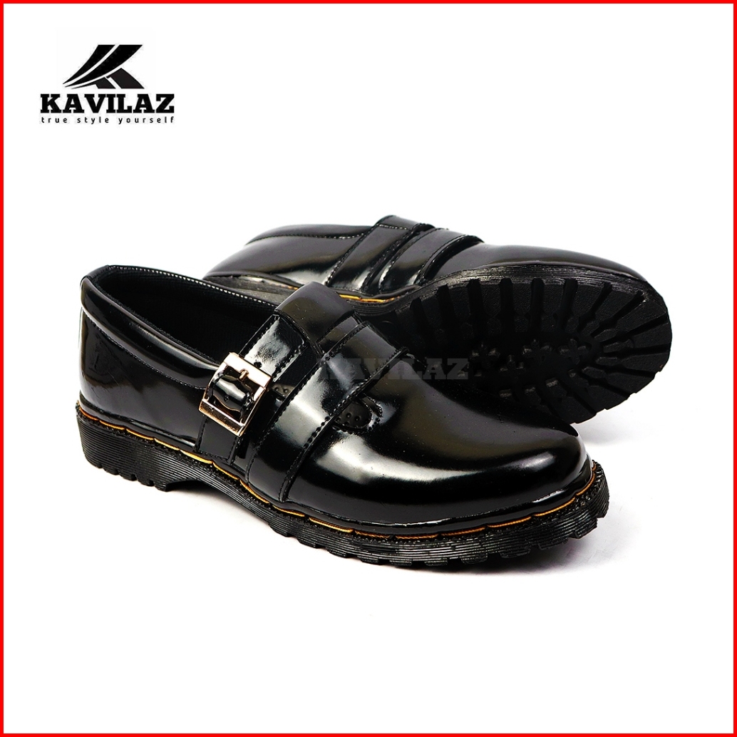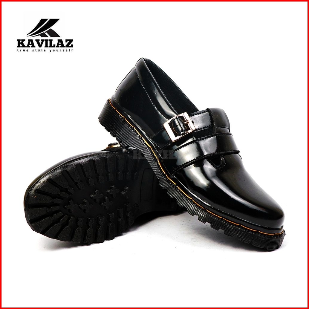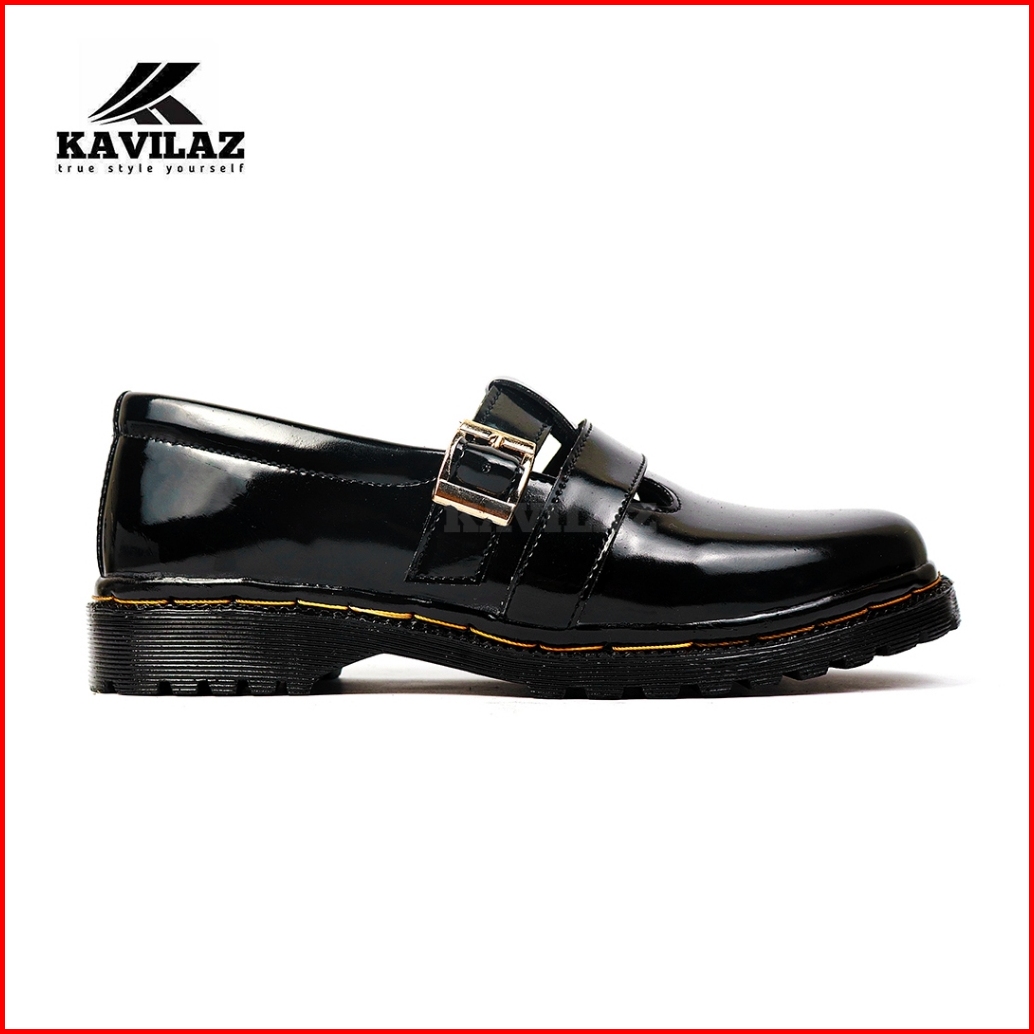 Kavilaz True Style Yourself Sepatu Wanita Flat Loafer Slip On Docmart Black Doff Glossy Kode Z1825