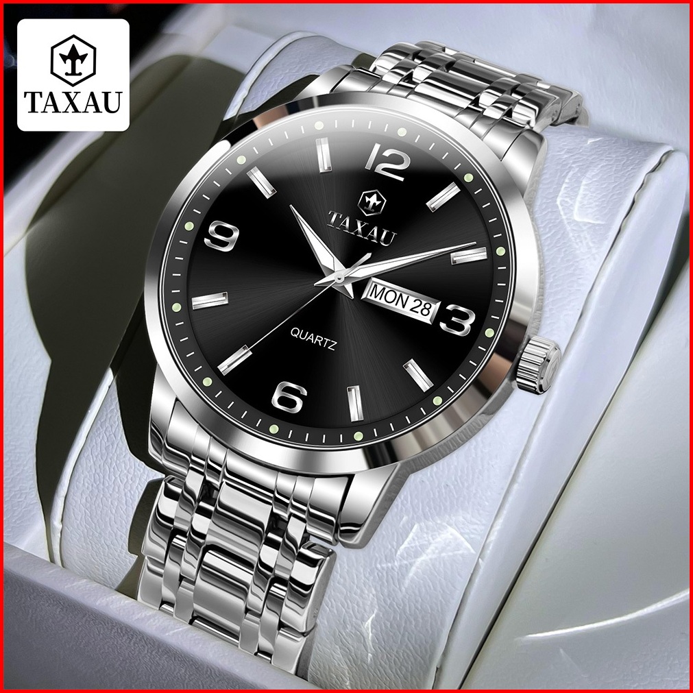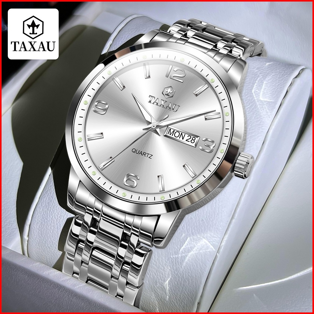 Taxau Jam Tangan Pria Original Anti Air Cowok Jam Tangan Pria Rantai Kalender Luminous Analog Arloji Bisnis Fashion Men