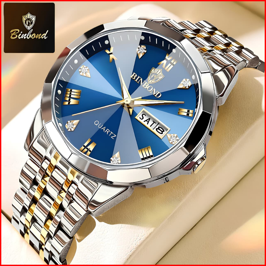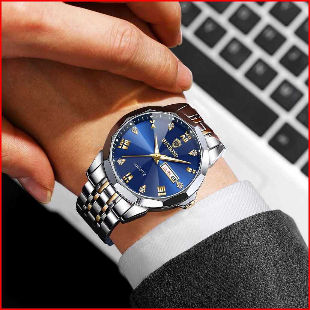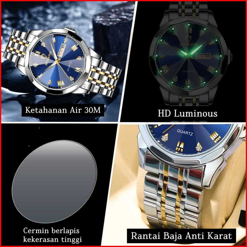 Binbond Jam Tangan Pria Anti Air Original Rantai Quartz Hitam Mewah Stainless Steel Luxury Men Watch