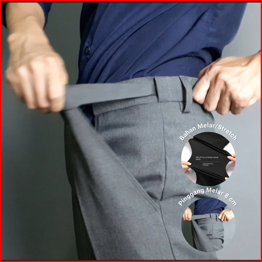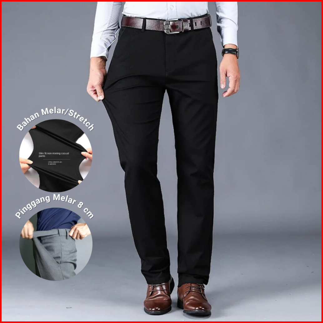 Bincoorank Celana Formal Bahan Melar Stretch Reguler Pria Pinggang Melar