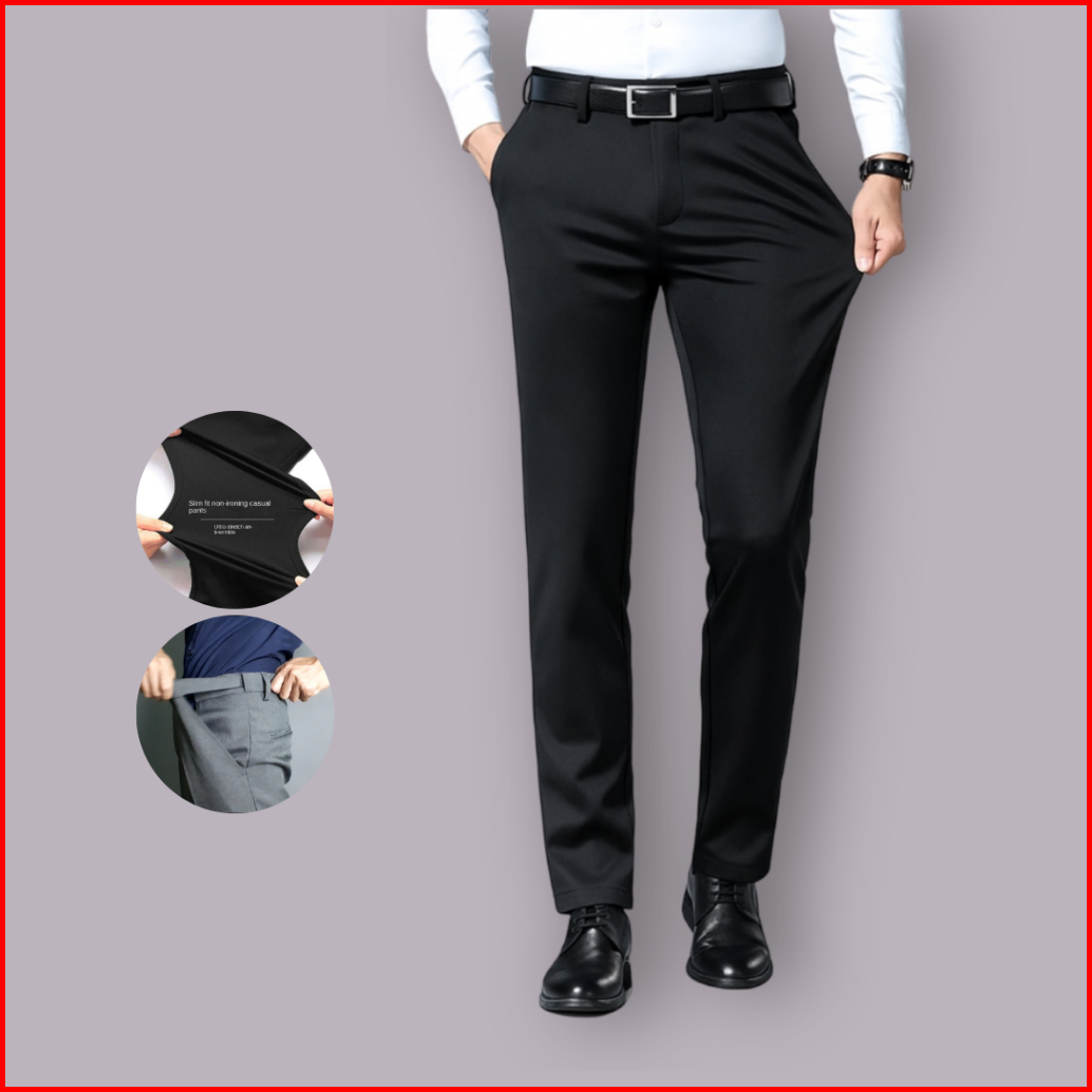Bincoorank Celana Formal Bahan Melar Stretch Slim Fit Pria Jumbo Pinggang Melar Size 40-45