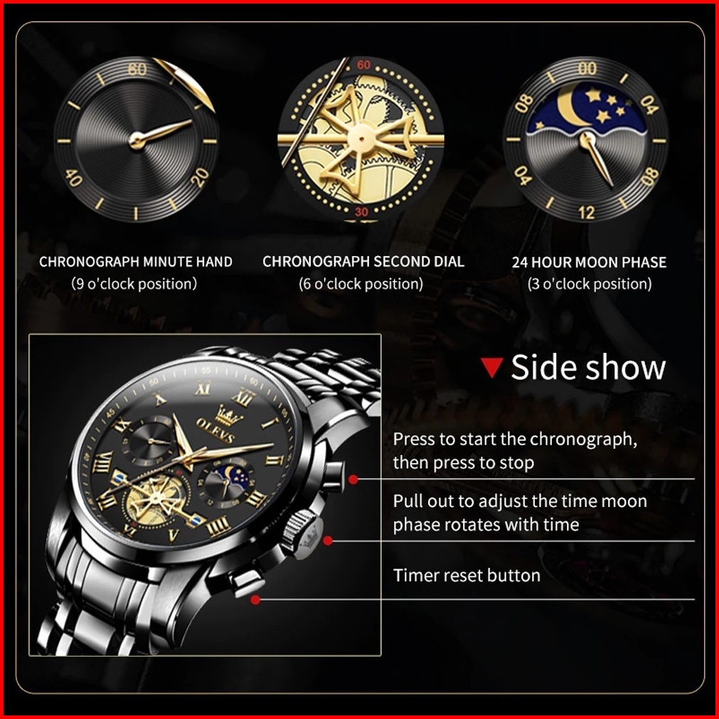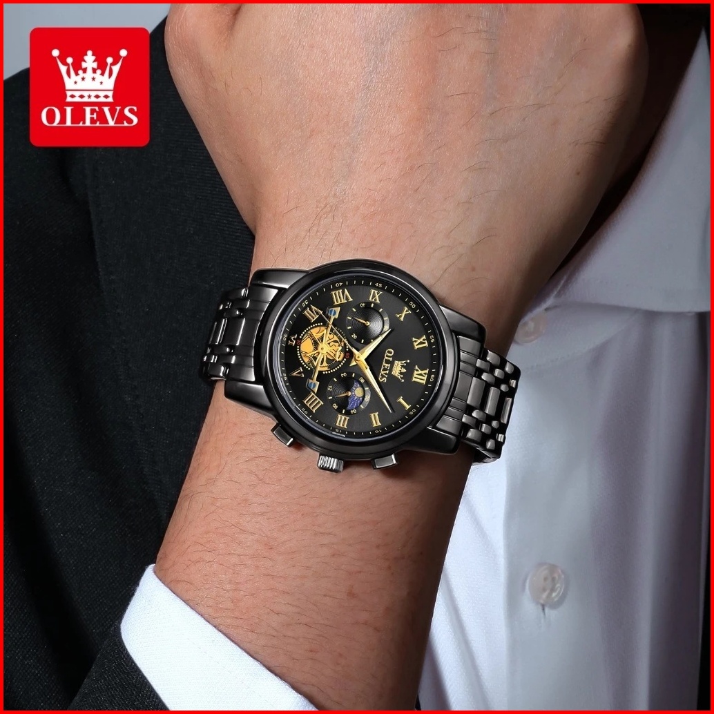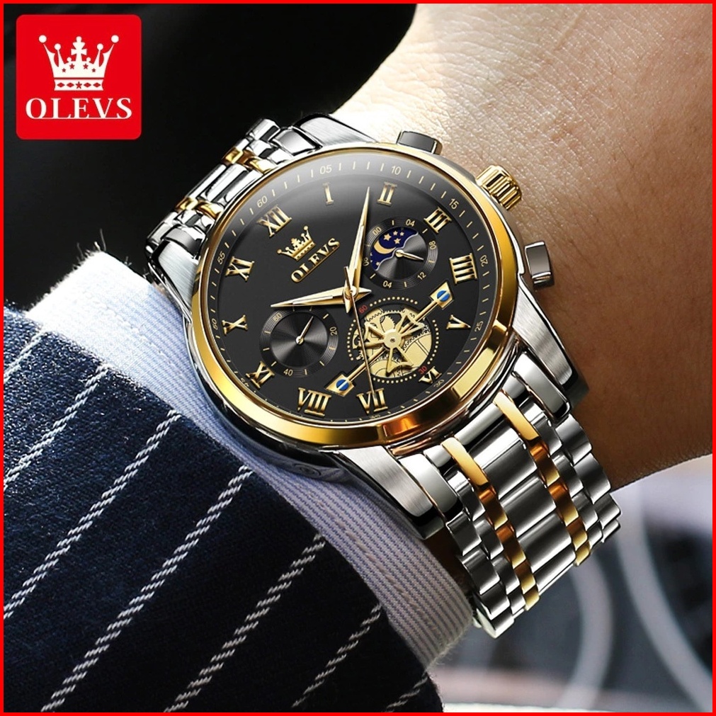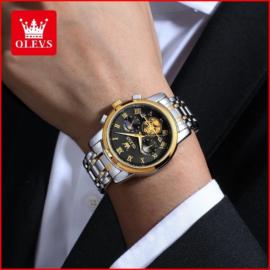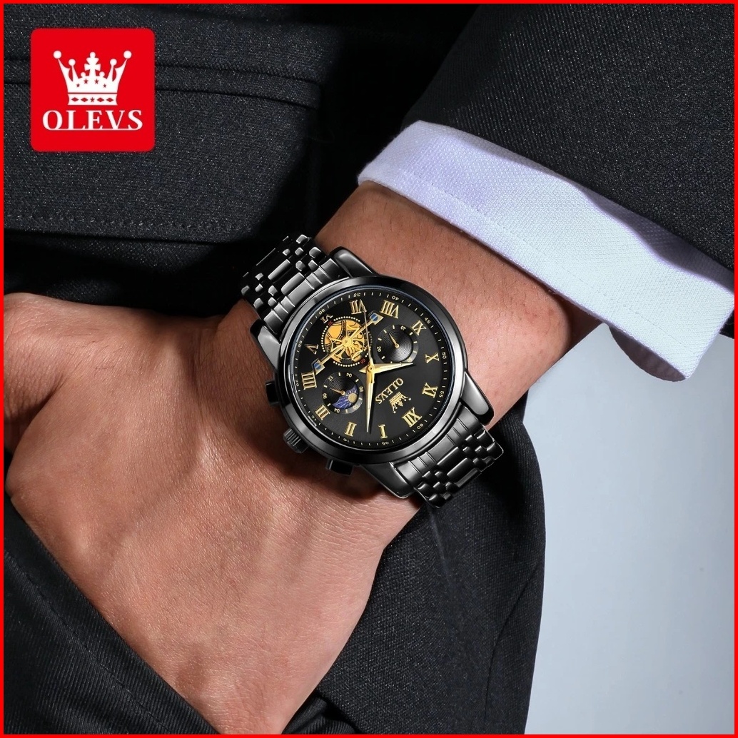Olevs Jam Tangan Pria Anti Air Original Stainless Steel Luminous Bisnis Kuarsa Chronograph Men Watch