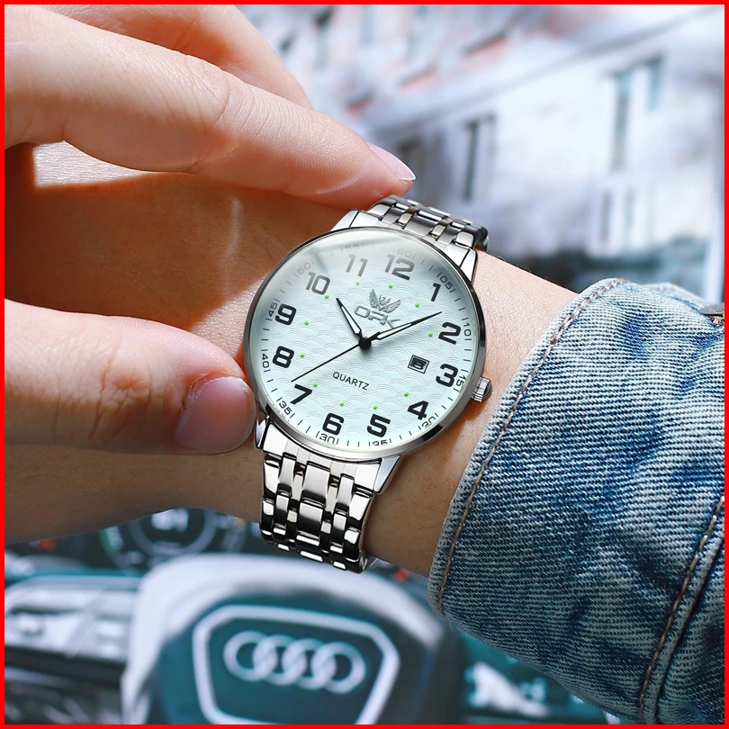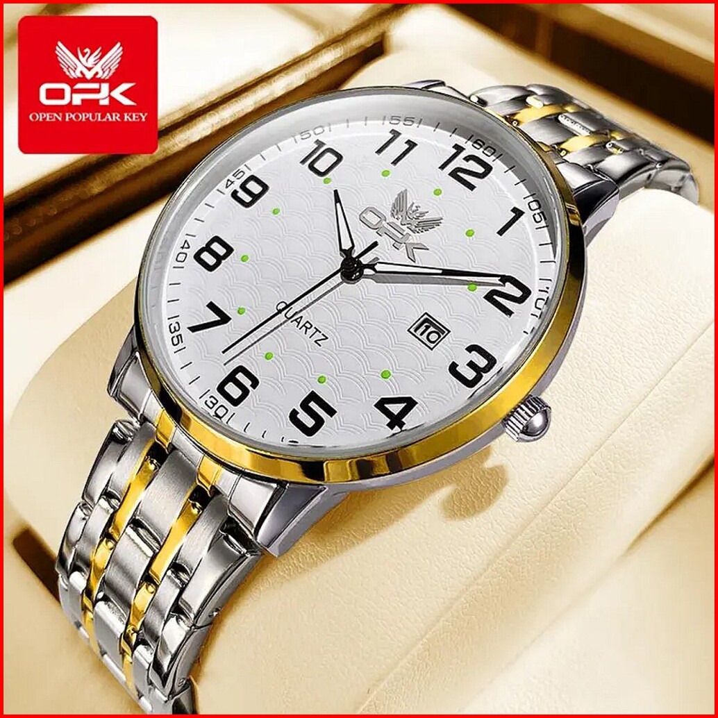 Jam Tangan Opk Pria 6006 Tahan Air 100 Original Cowok Luminous Kalender Stainless Steel Men Watch