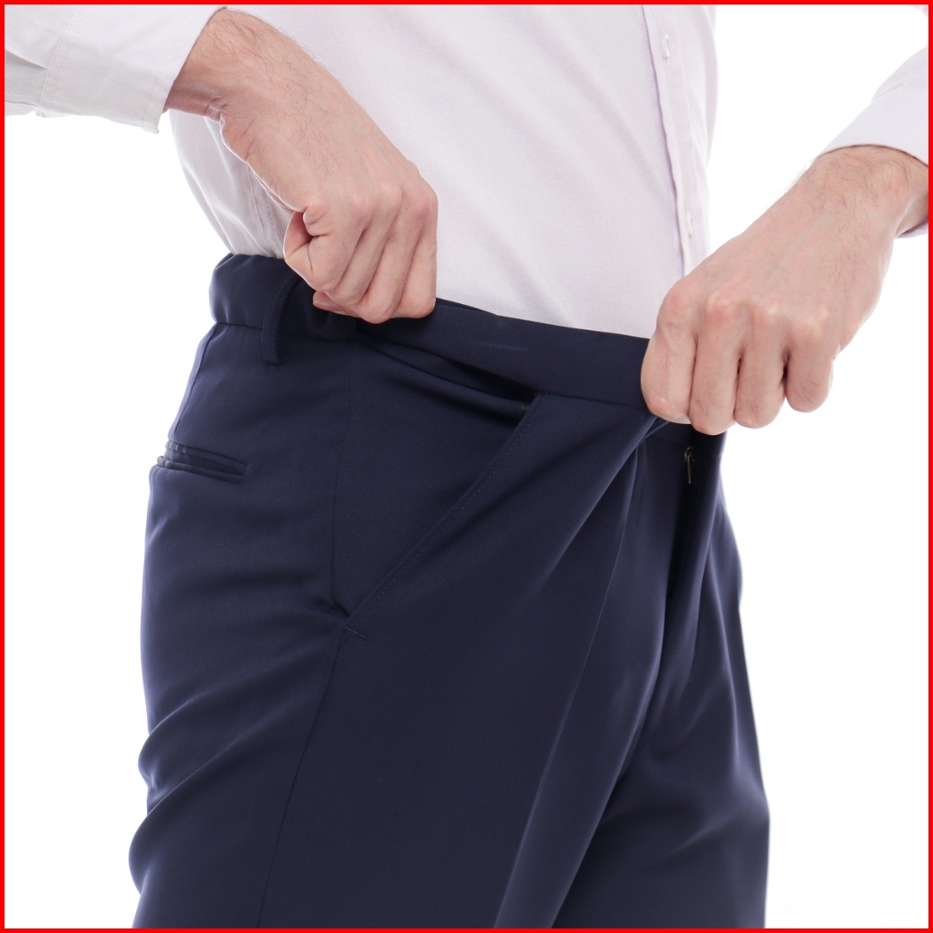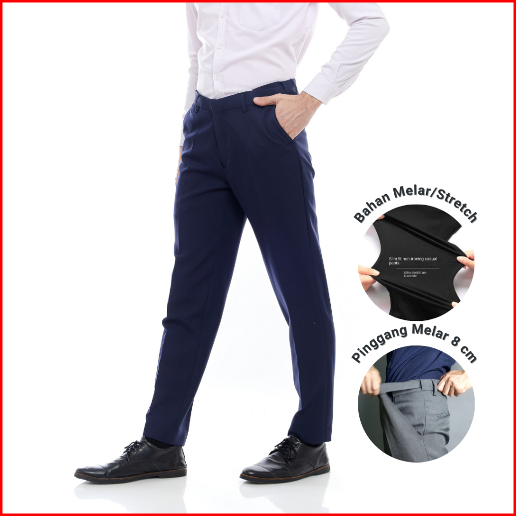 Bincoorank Celana Formal Bahan Melar Stretch Reguler Pria Pinggang Melar Size 40-45 Warna Navy