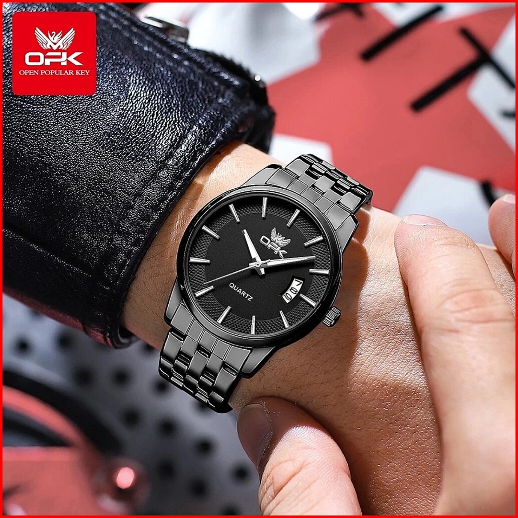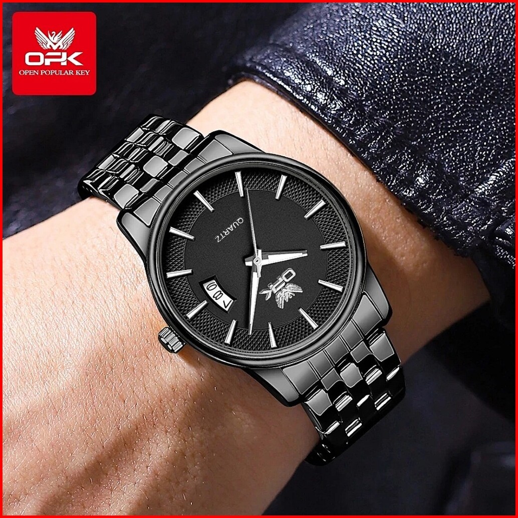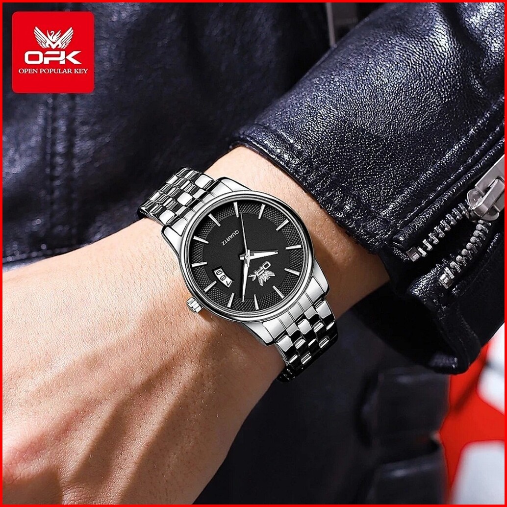 Jam Tangan Opk Pria 6045 Anti Air Original Stainless Steel Luxury Bisnis Kasual Kalender Men Watch