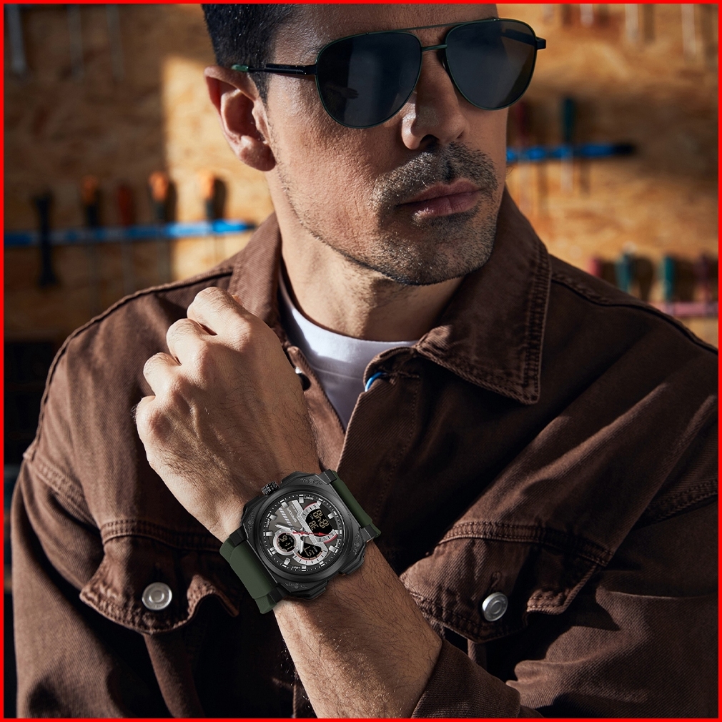 Jam Tangan Pria Sanda 3356 Tahan Air 5atm 100 Original Tali Rubber Dual Time Terbaru 2024