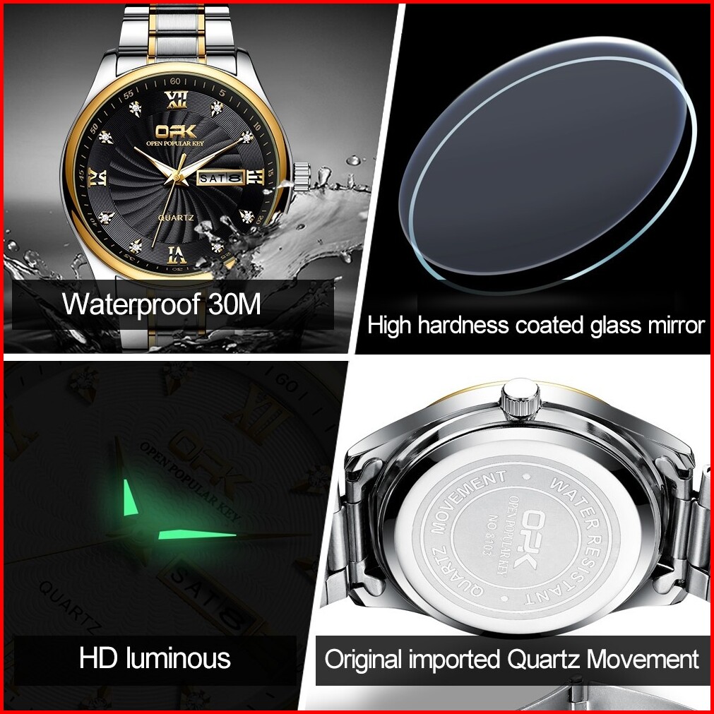 Jam Tangan Pria Opk 8103 Anti Air Murah Elegan Terbaru Rantai Tahan Karat Quartz Movement