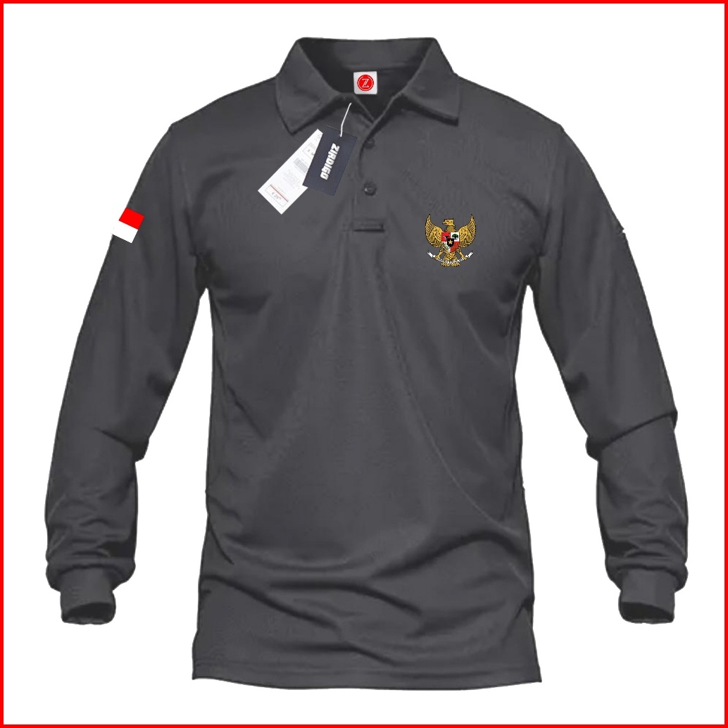 Zirdigo Kaos Polo Shirt Pria Kerah Lengan Panjang Hut Ri Garuda L L3 Sablon Print Quality