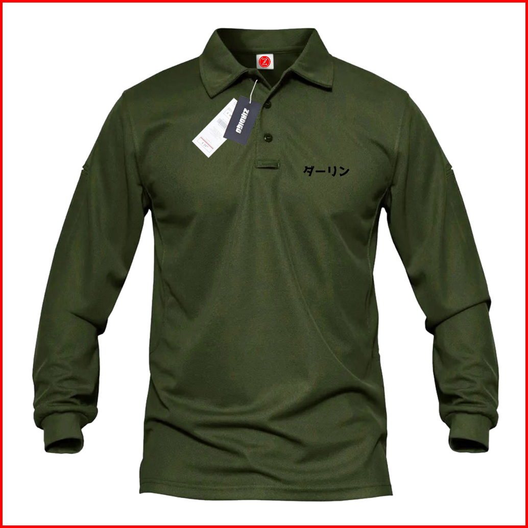 Zirdigo Kaos Polo Shirt Pria Kerah Lengan Panjang Pozuga Japan Hitam Sablon Print Quality