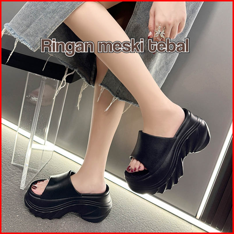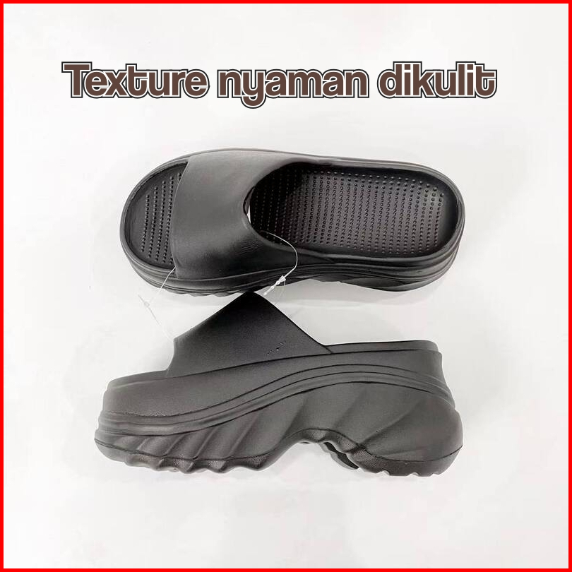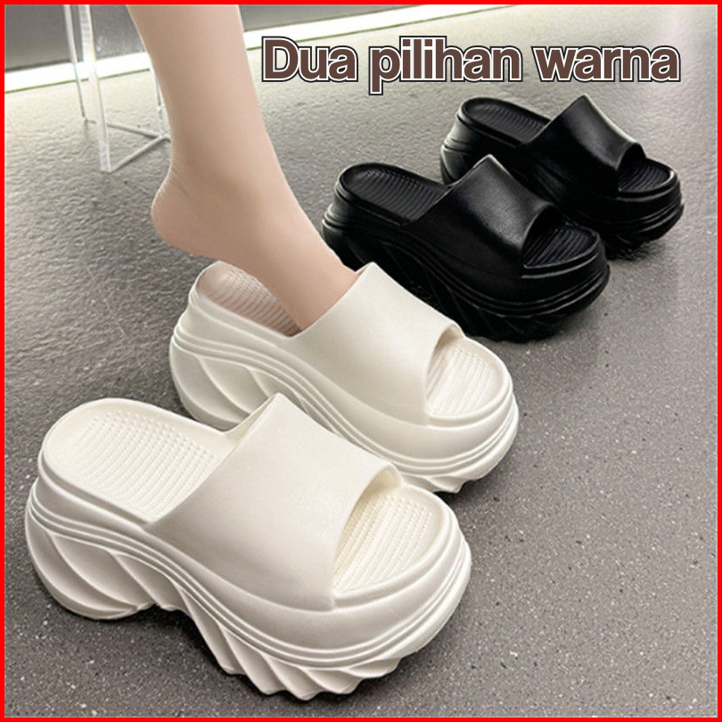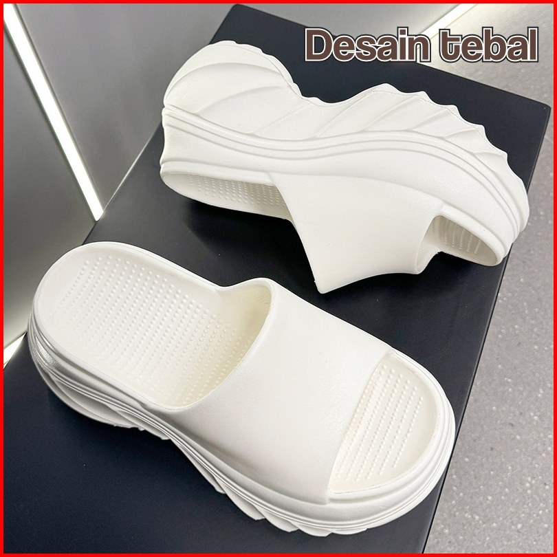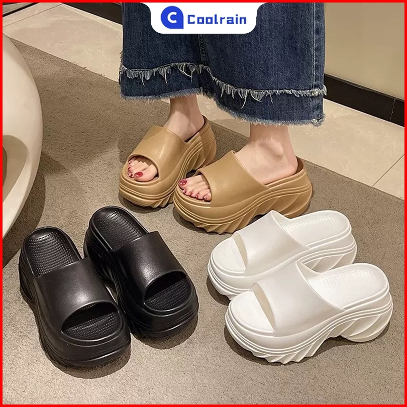 Coolrain Sandal Wanita High Heel Flat Eva Karet Tebal Nyaman Empuk Anti-slip Stylish Kekinian Hvc969