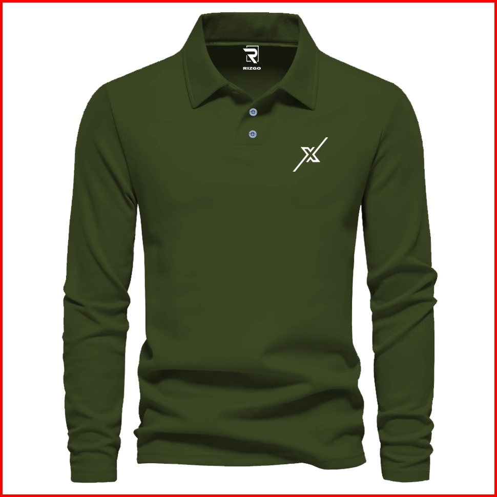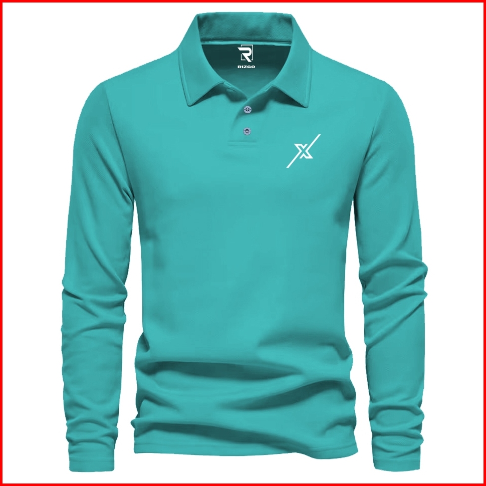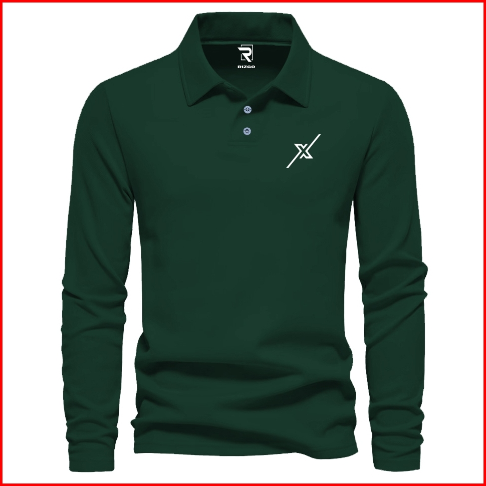 Rizgo - T Shirt Polo Lengan Panjang X New Motif Putih Distro Kerah T-shirt Pria Wanita Tebal Baju Keren Bahan Katun Piqu