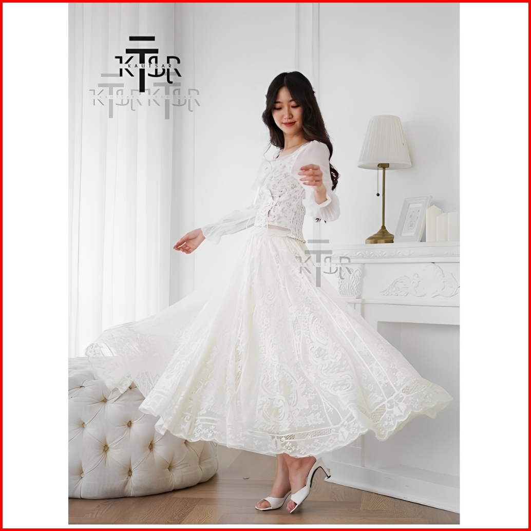 Rok Brokat Premium Bomi Bora Skirt Lace Rok Panjang Payung Elegan Vintage Maxi Kekinian