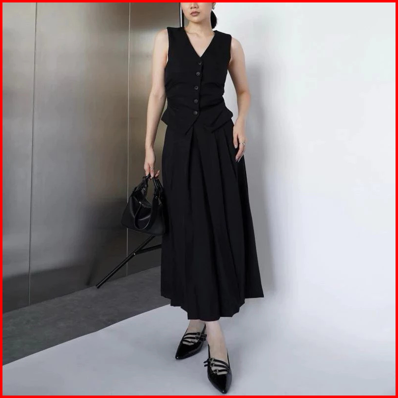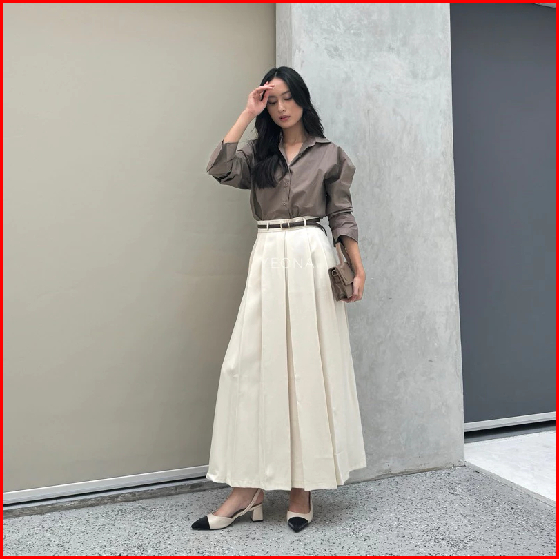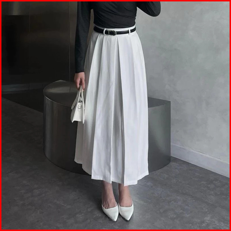 Lfry - Rok Kerja Kuliah Wanita Kantor Formal Korean Style - Midi Skirt Rok Panjang Polos Putih