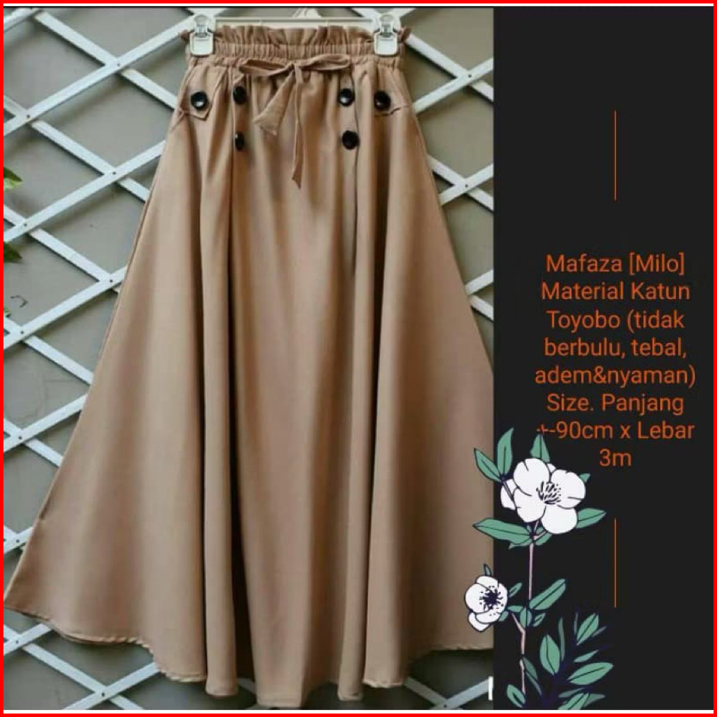 Rok Payung Hitam Panjang Polos Wanita Katun Toyobo Premium Adem Lembut Rok Muslimah Rok Kerja Wanita Murah