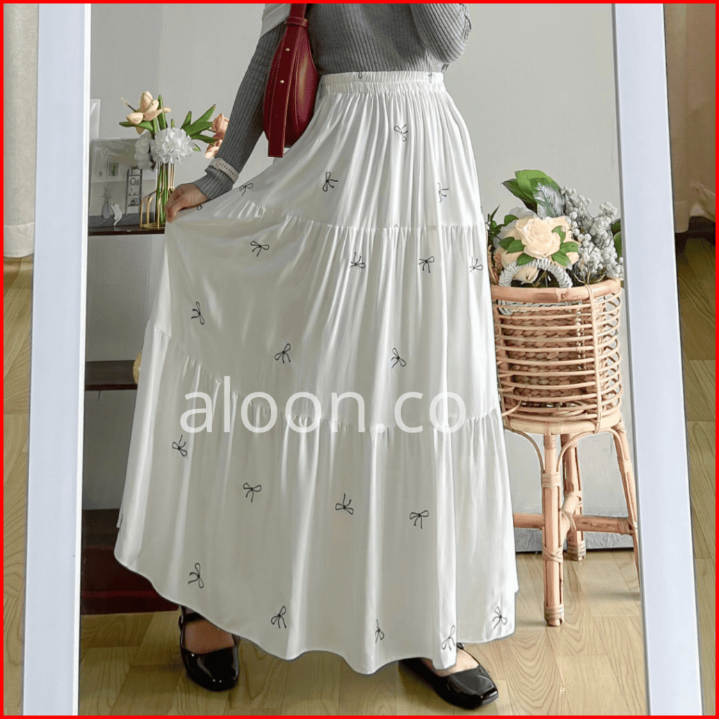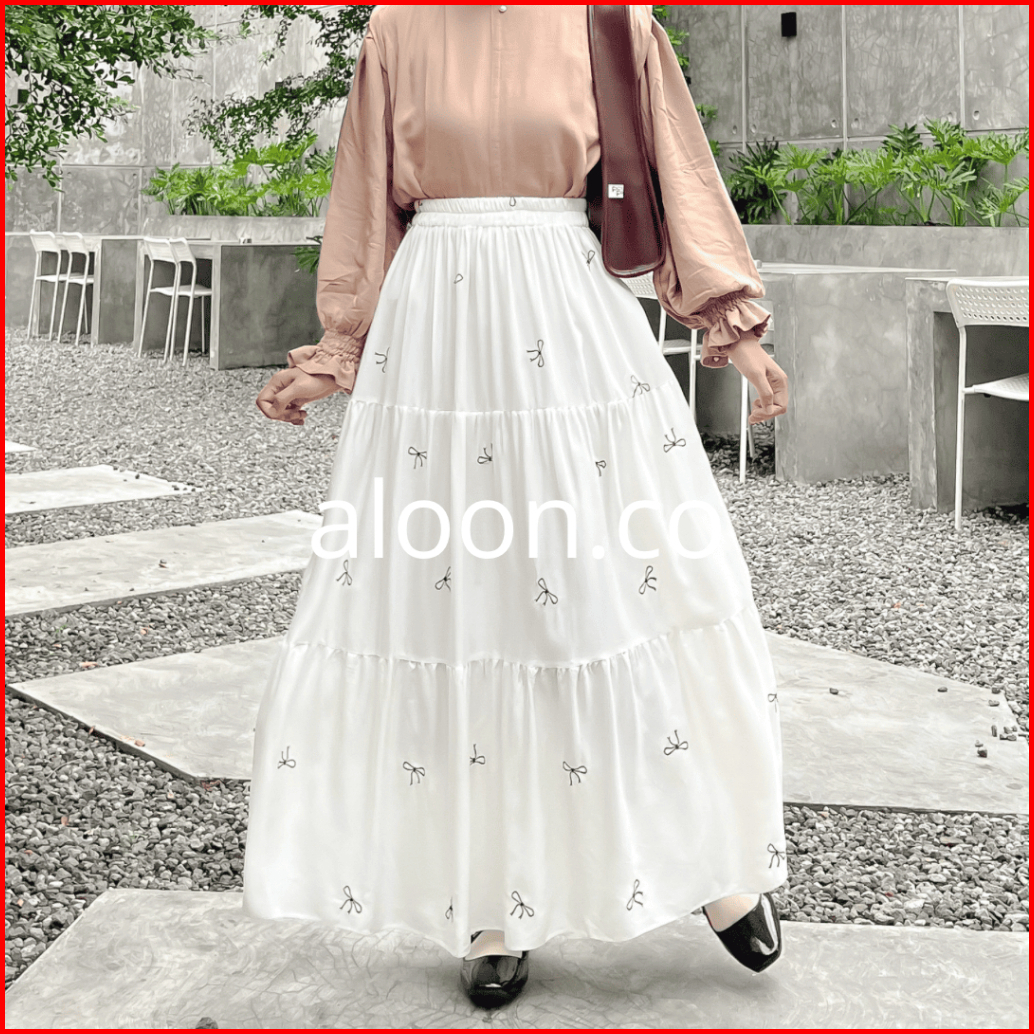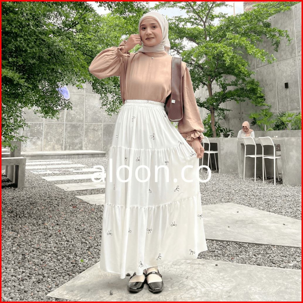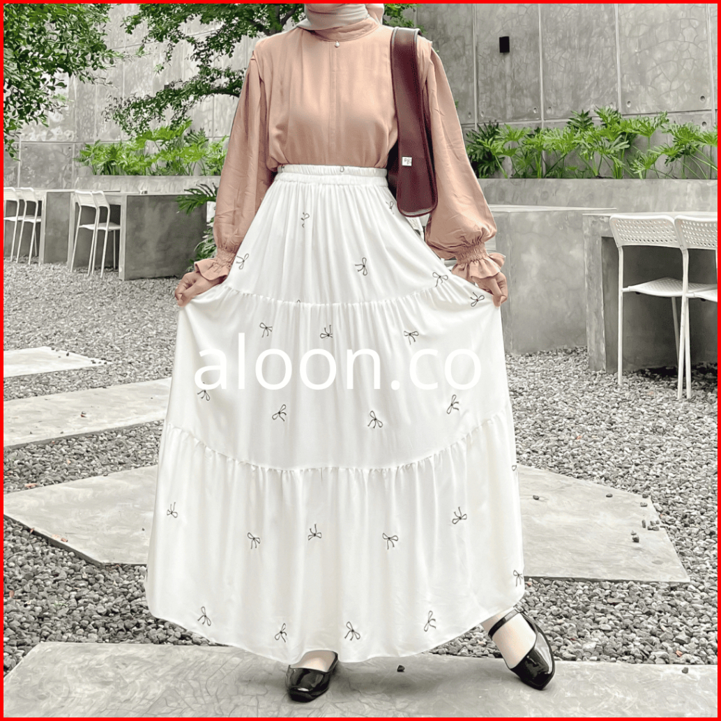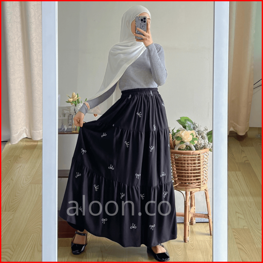Kiyomi Rok Rempel Bordir Pita Rayon Twill Premium Rok Korean Style Wanita