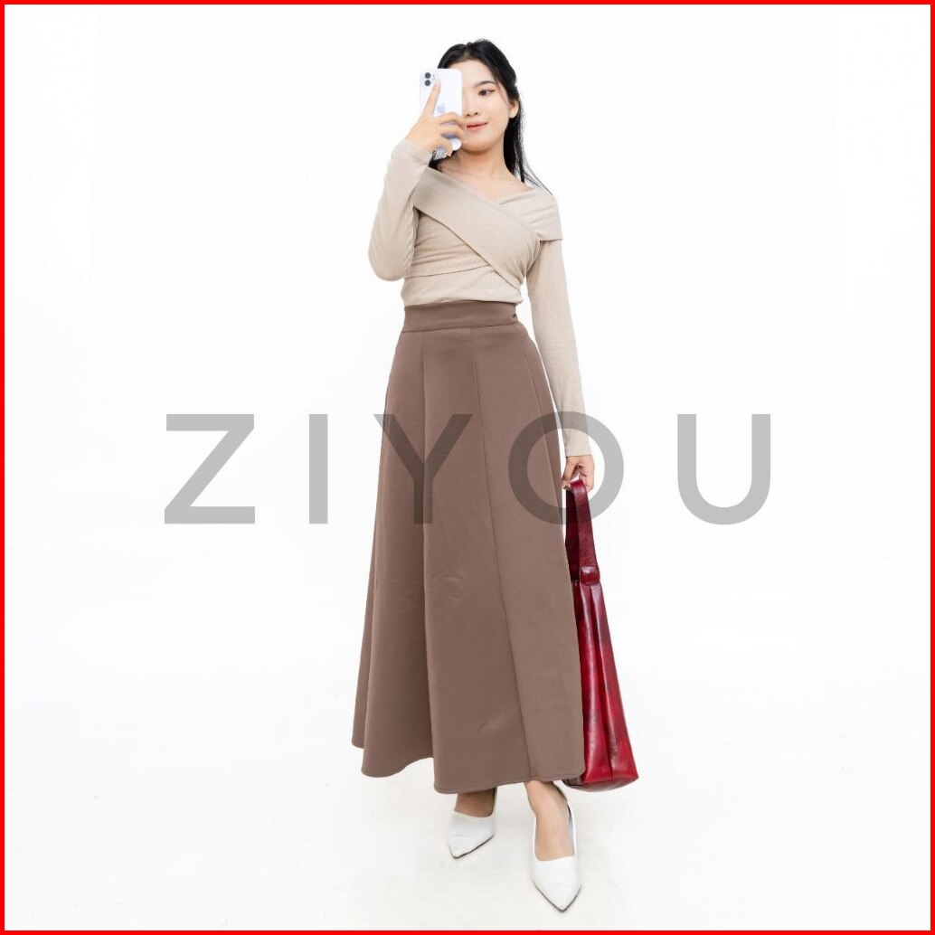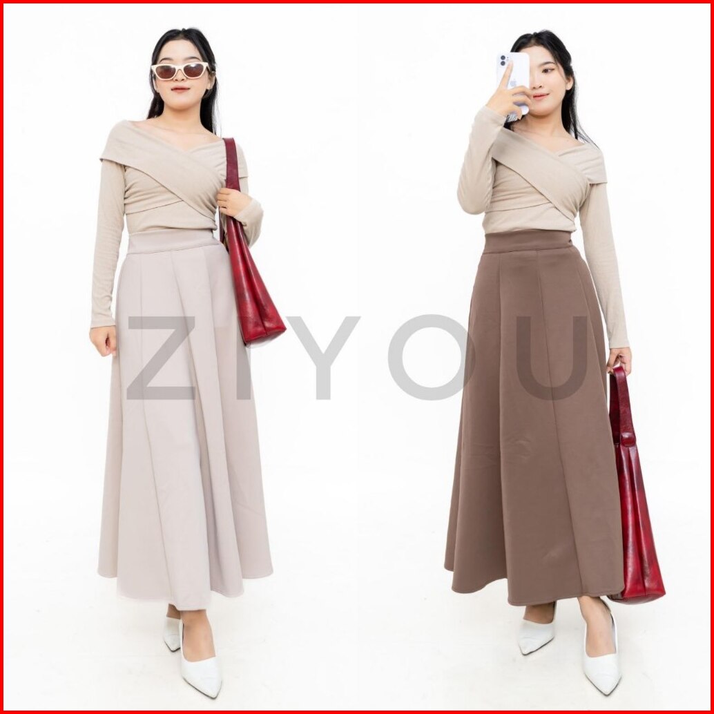 Rok Wanita Maxi Loose Panjang Basic Polos Skirt Audy Korean Style