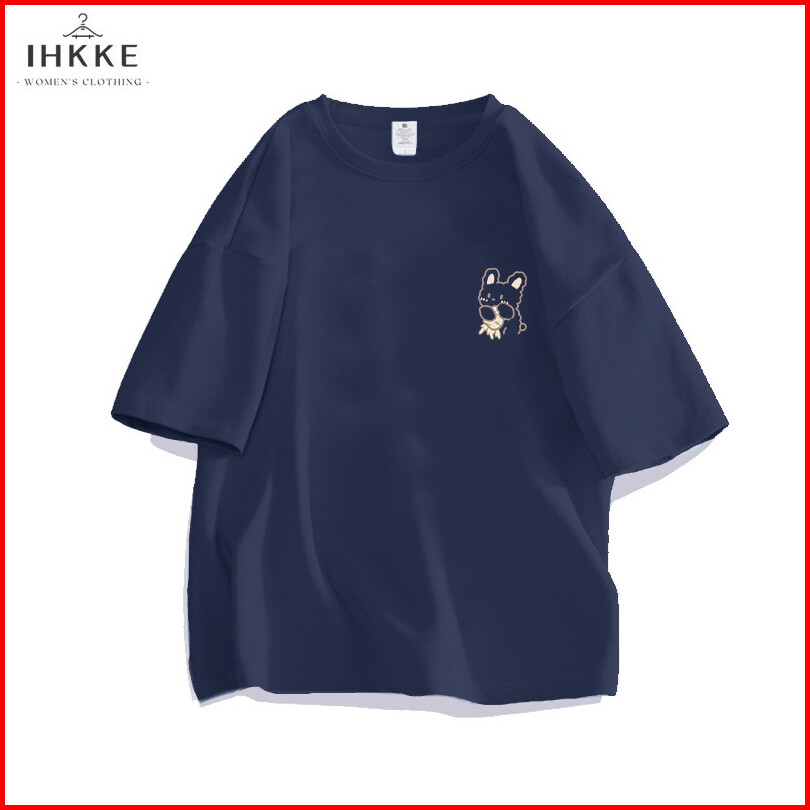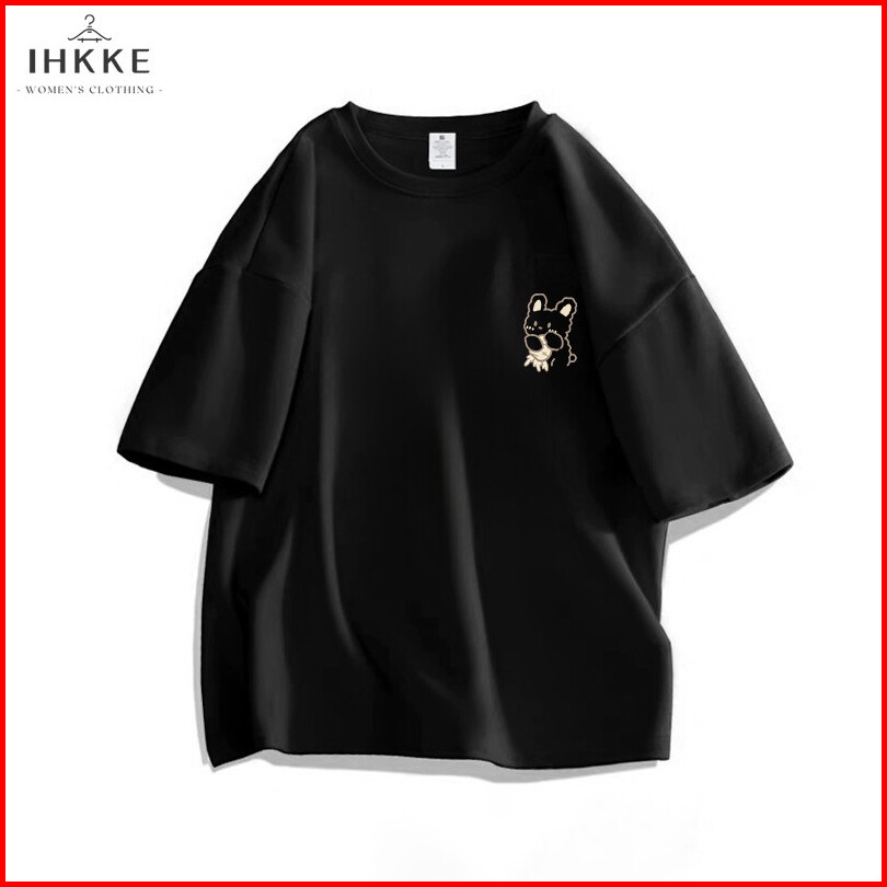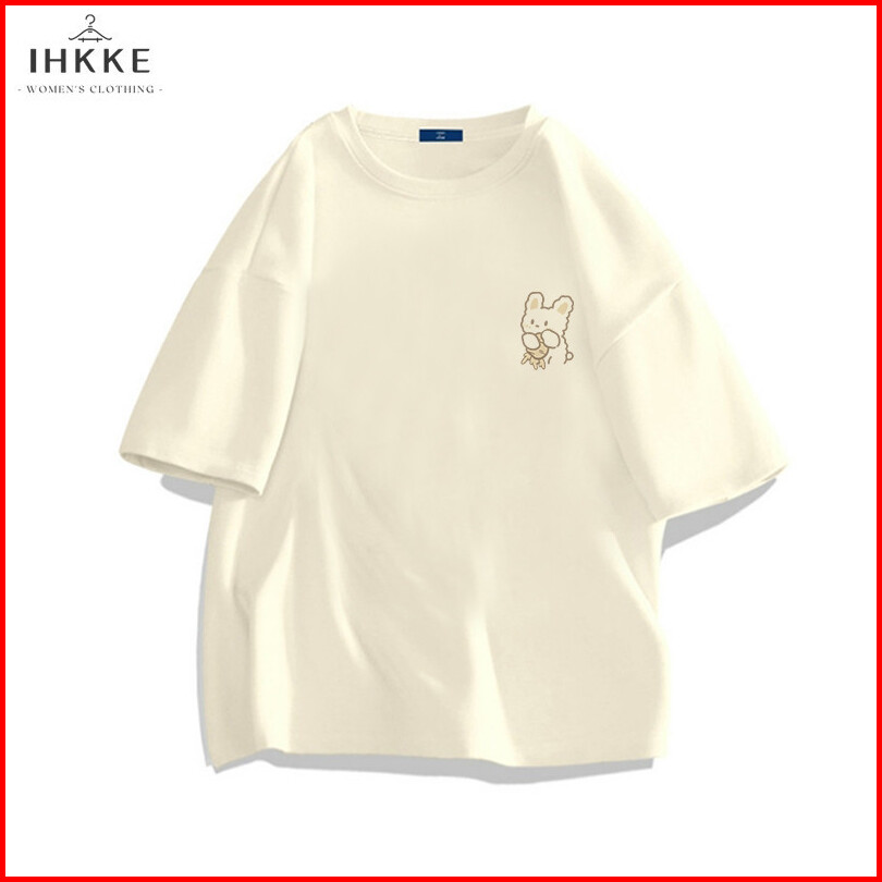 Ihkke Atasan Wanita Kekinian Lengan Pendek Oversize American Cute Rabbit Graffiti Kaos Cream Baju Atasan Wanita Terbaru