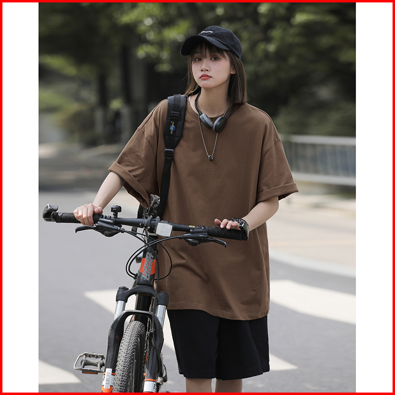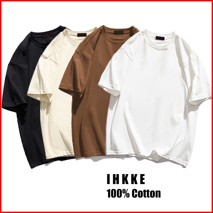 Ihkke T-shirt Oversize Fashion Warna Solid Kaos Cewek 100 Katun
