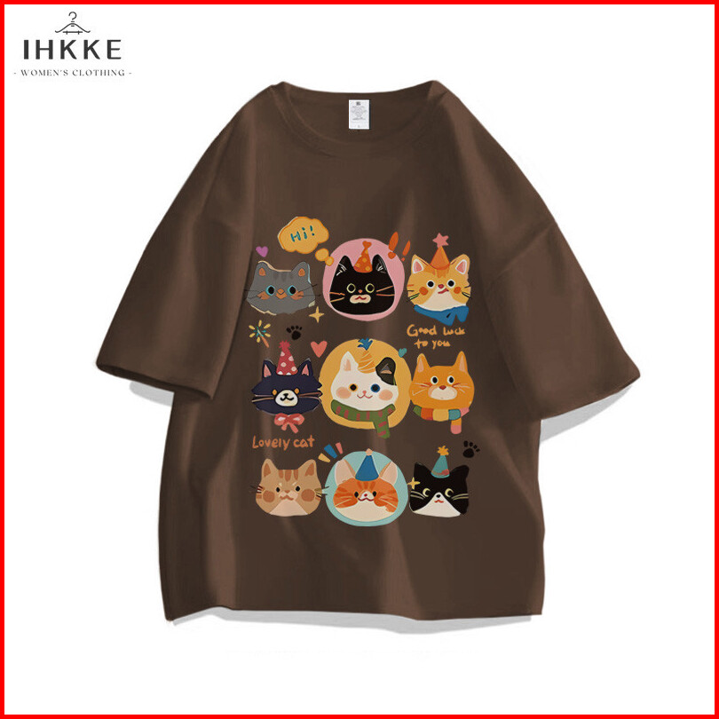 Ihkke Baju Wanita Kekinian Lengan Pendek Kartun Lucu Cat Motif Graffiti Kaos Cream Import Premium Kaos Remaja Perempuan