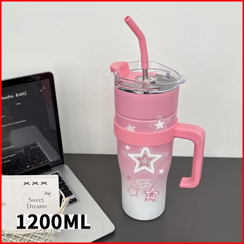 Tumbler Cute Star Botol Minum Aesthetic Stainless Steel Tumblr Coffee Cup 1200 Ml Termos Tahan Dingin Panas Tambler Vira