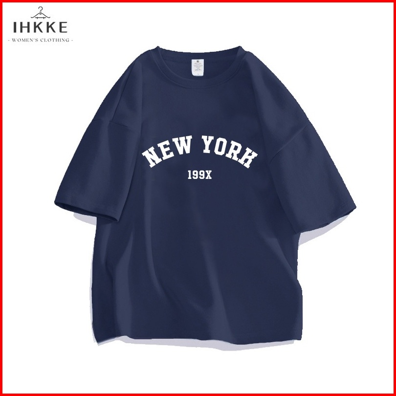 Ihkke Atasan Wanita Korea Style New York 199x Alphabetical Digital Style Graffiti Navy T Shirt Baju Atasan Wanita Terbar