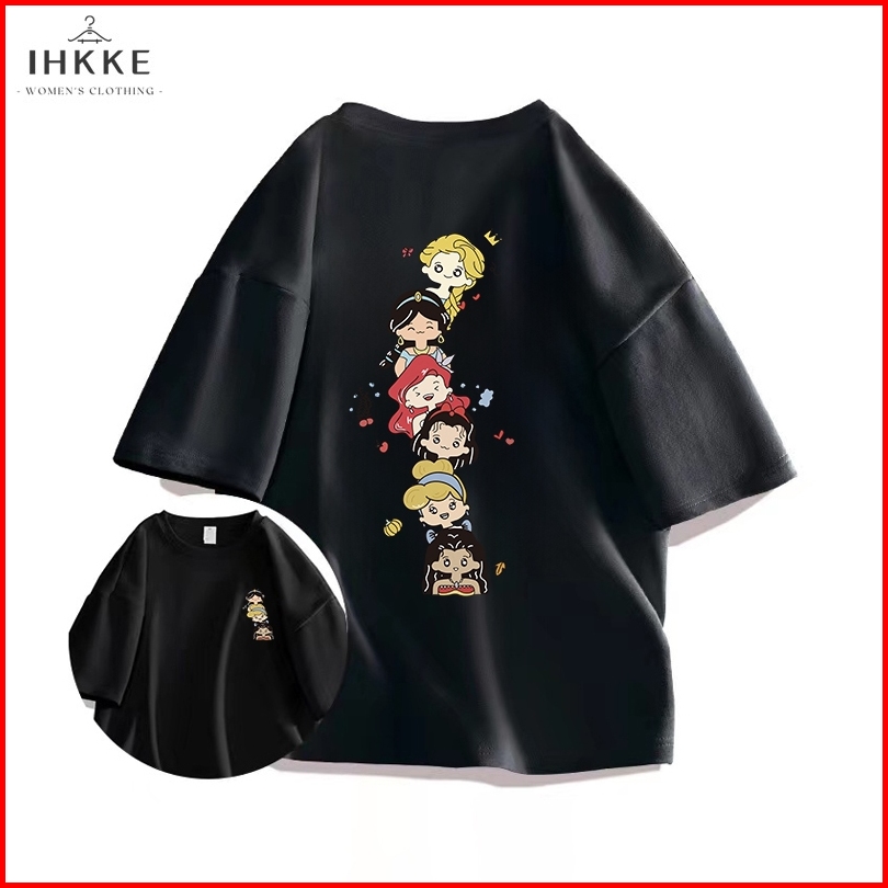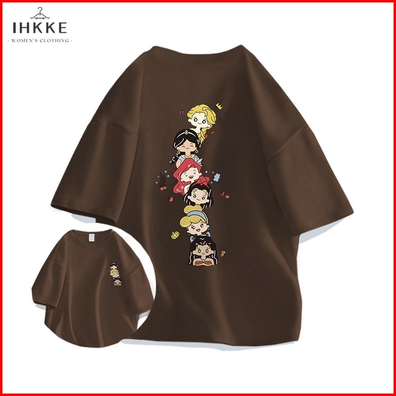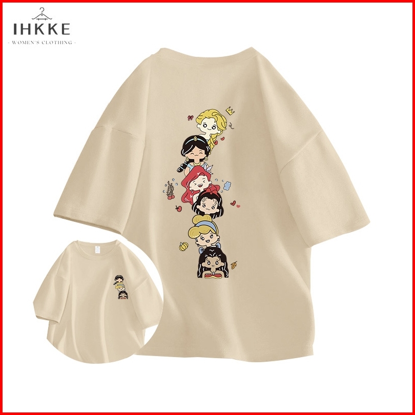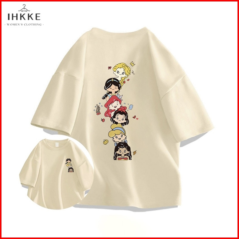 Ihkke Baju Kaos Wanita Lengan Pendek Korean Style Oversize Cartoon Little Princess Kaos Cream Import Cotton Spring New K