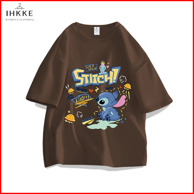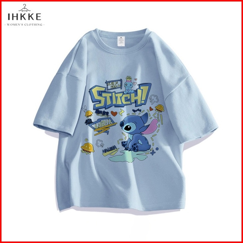 Ihkke Atasan Wanita Kekinian Lengan Pendek Pola Stitch Kartun Lucu Motif Graffiti Navy T Shirt Baju Atasan Wanita Terbar