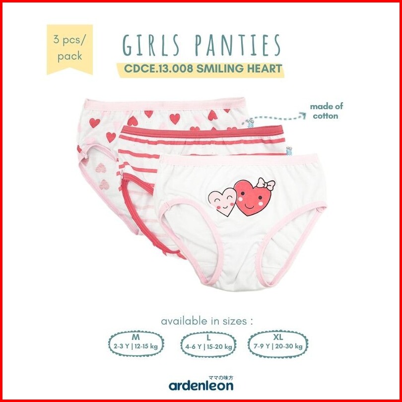 Ardenleon Celana Dalam Anak Perempuan Girls Panties 3 Pcs Smiling Heart