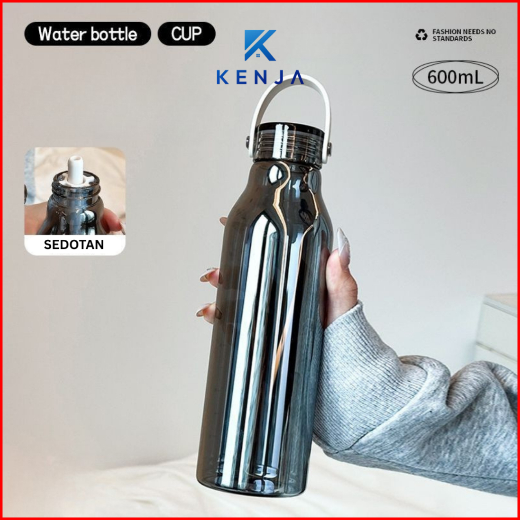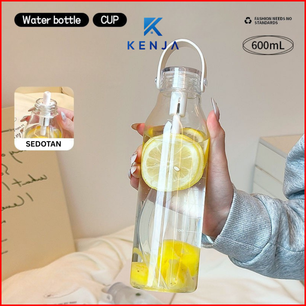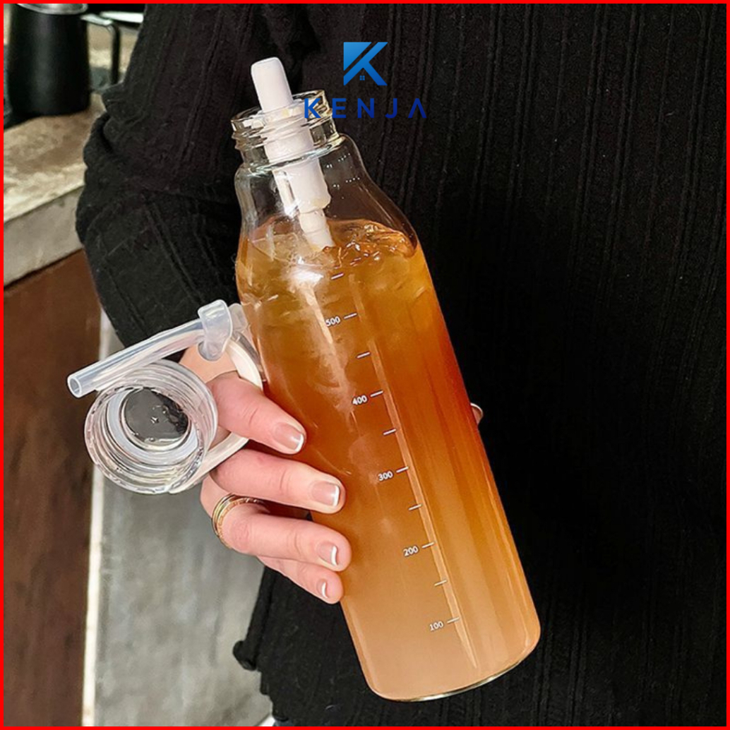 Kenja Botol Minum Kaca Estetik Fashionable 600 Ml Dengan Sedotan Praktis Mudah Dibawa