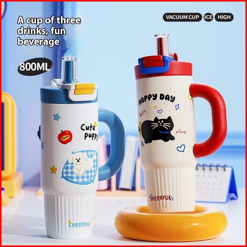 Tm2228 Tumbler Gagang Stainlees Steel 800ml Termos Air Karakter Lucu Tahan Panas Dan Dingin