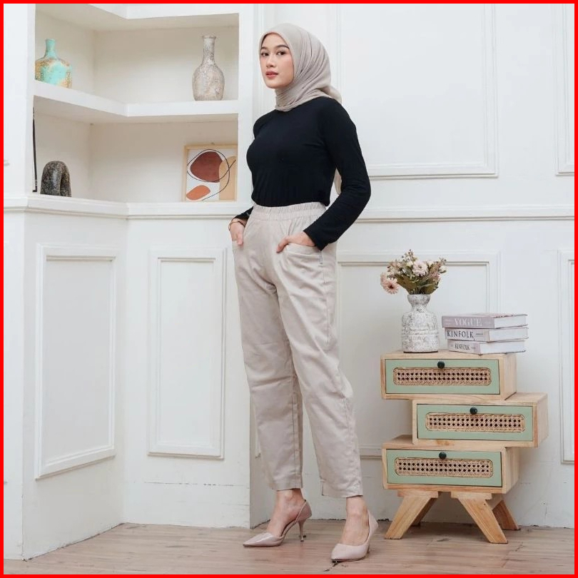 Haruka Long Pants - Celana Panjang Wanita Korean Pants Cotton Twill Stretch