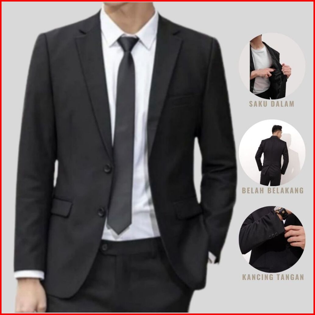 Jas Pria Hitam Buat Wisuda Nikah Kondangan Blazer Formal Slimfit Kerja Kantor Bahan Valencia Twist