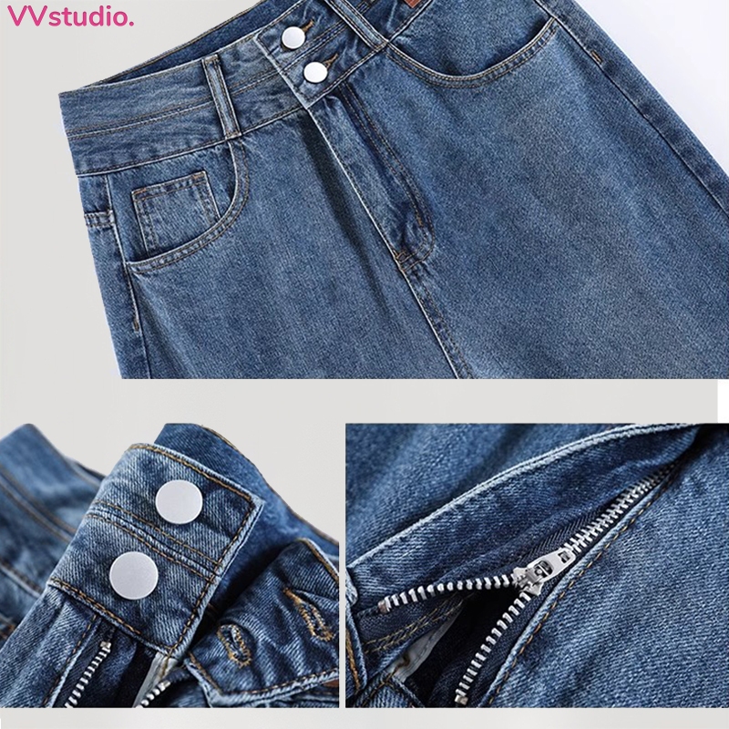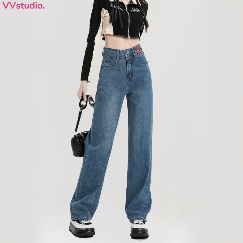 Celana jeans panjang wanita Biru retro high waist kulot Jeans wanita Boyfriend jeans Korea Jeans Celana Jeans oversize