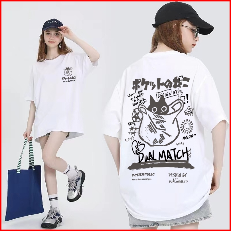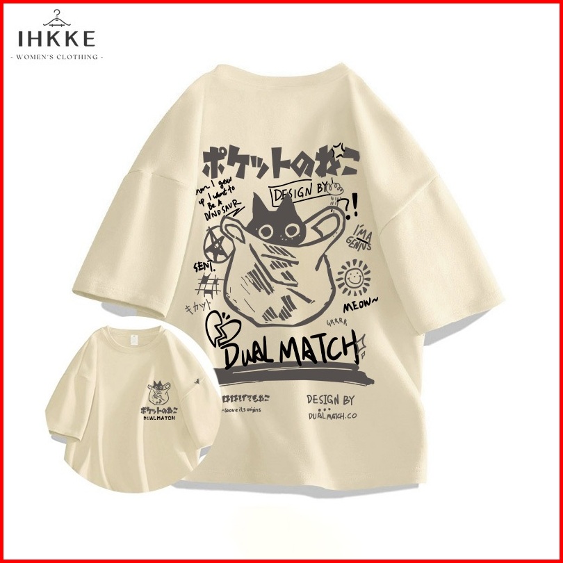 Ihkke Kaos Wanita Baju Oversize Pocket Cat Korean Style T Shirt 100 Cotton Vintage
