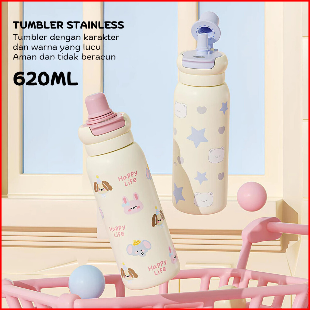 Anka Living Tumbler Stainless Karakter Lucu 620ml Botol Minum Sus316 Food Grade Tahan Panas Dingin