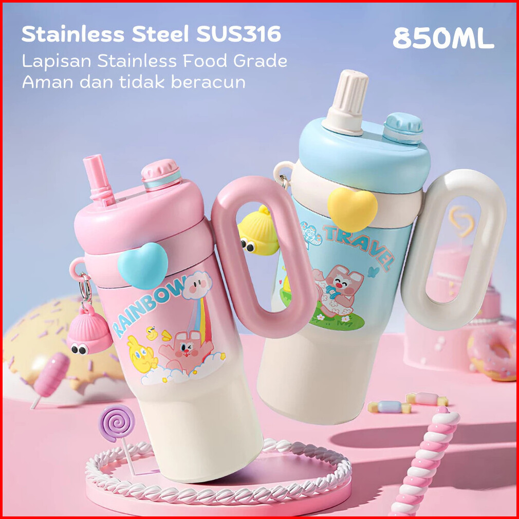 Botol Minum Anak 850ml Karakter Lucu Tumbler Sus316 Anti Bocor Tahan Suhu Panas Dingin