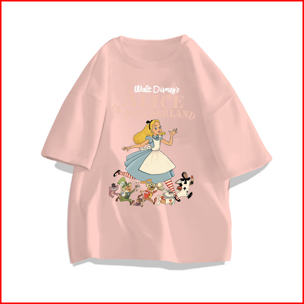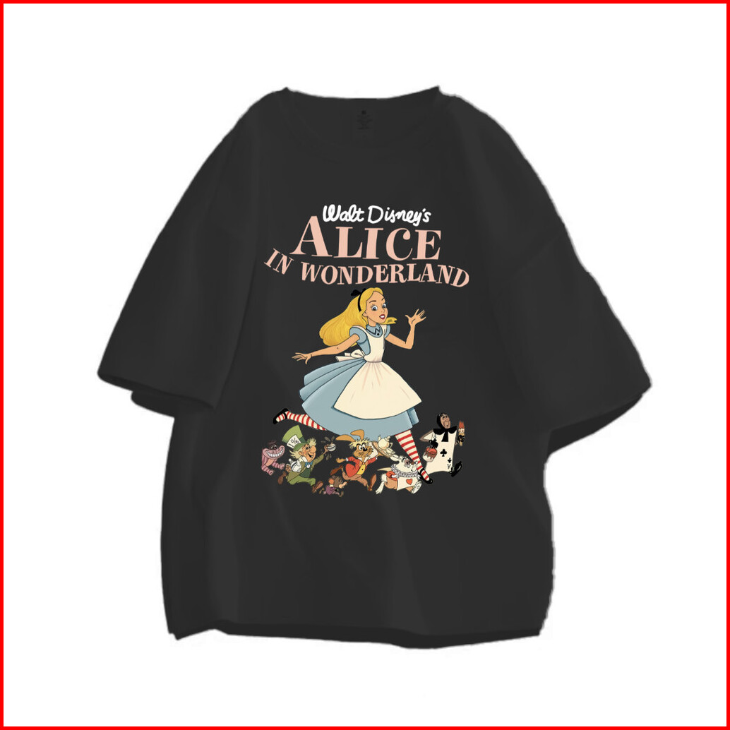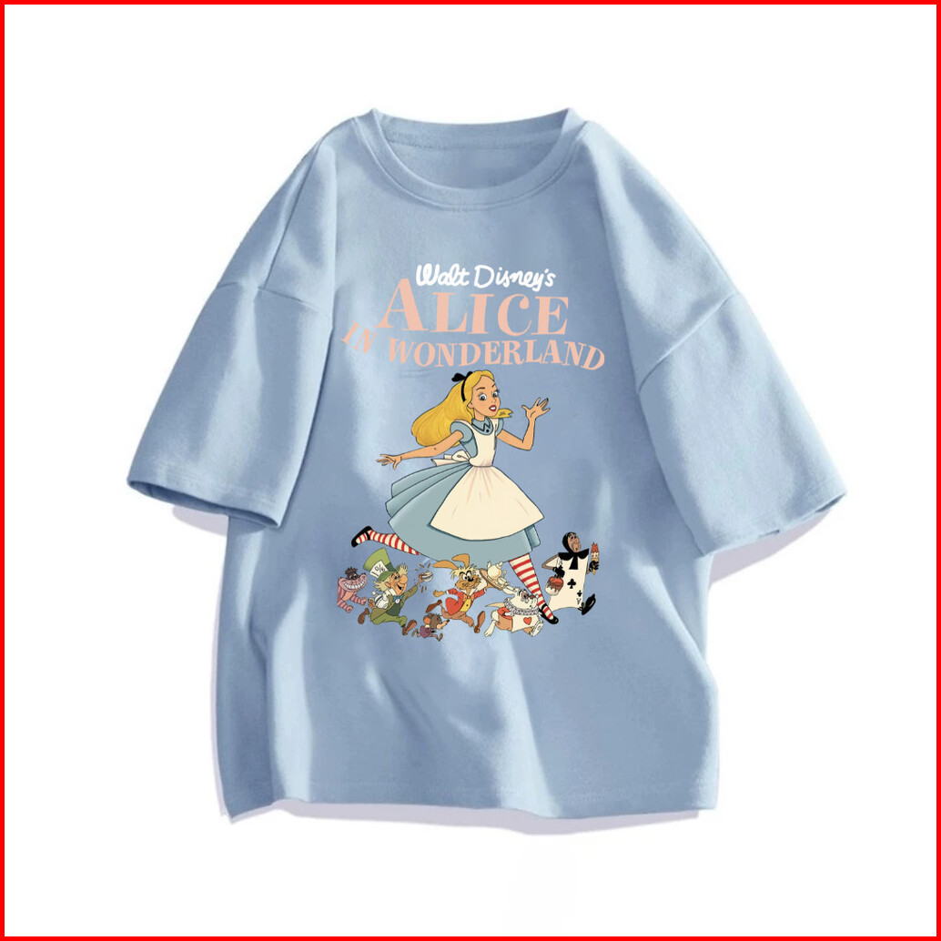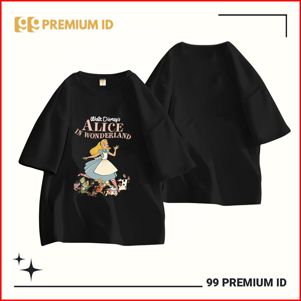 99premium - Kaos Lengan Pendek Oversize Gambar Alice In Wonderland Tshirt Wanita Model Lucu 100 Cotton