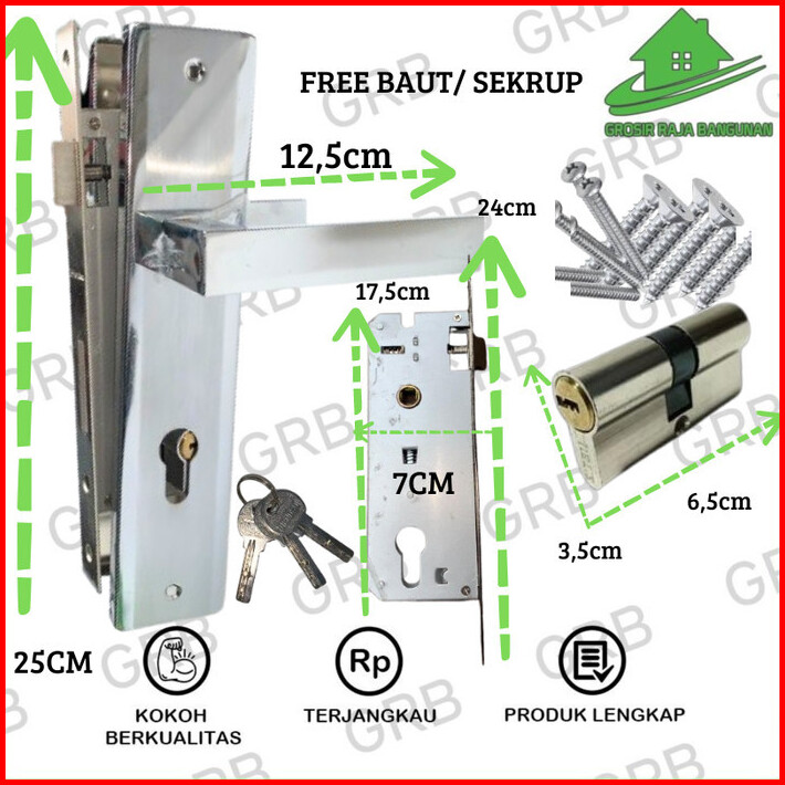 Gagang Pintu Door Handle Besar Komplit Gagang Kunci 25 Cm High Quality Kunci Set Lengkap Full