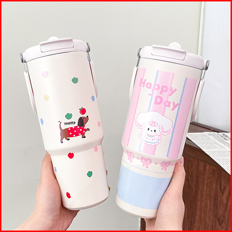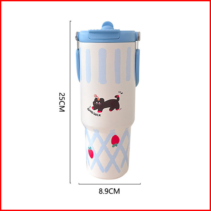 Tumbler 900ml Stainless Steel 316 Handle Lucu Desain Hewan Tahan Panas Dingin Kualitas Premium