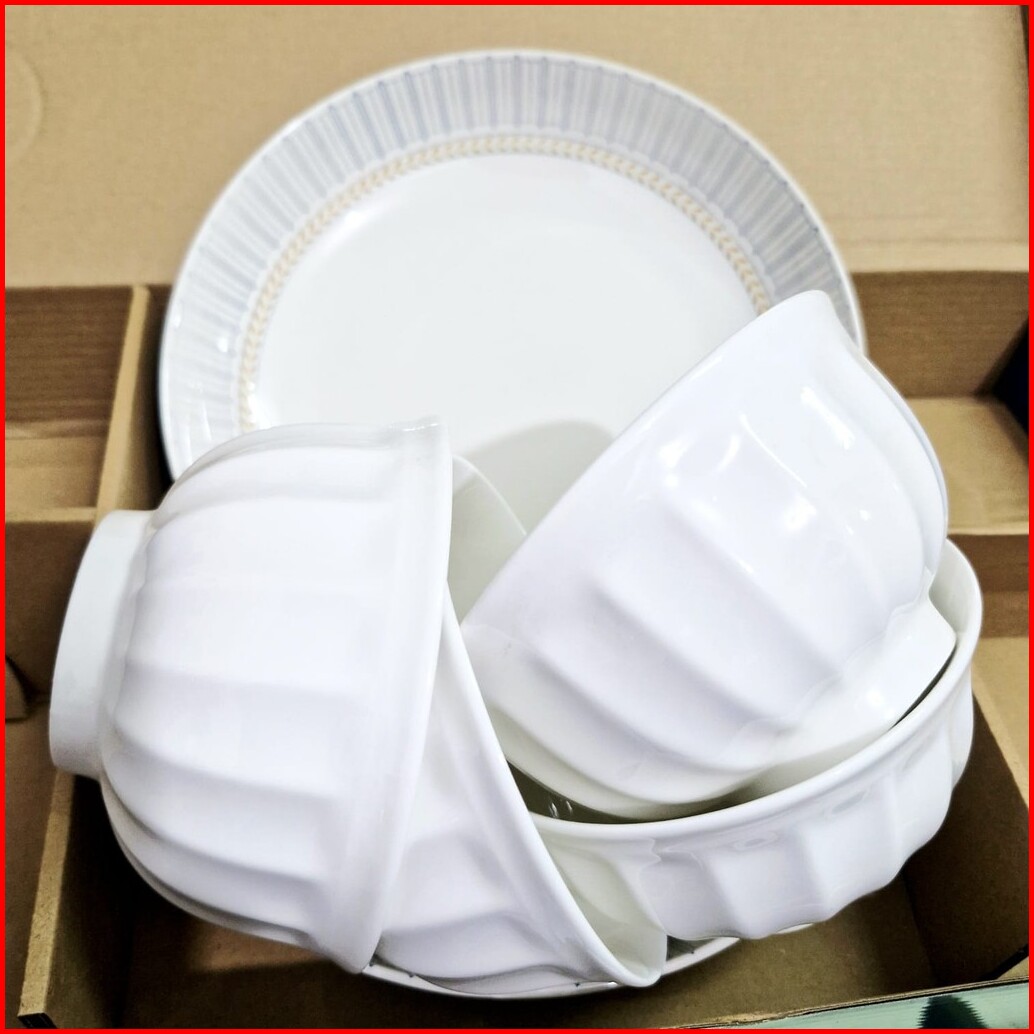 Mangkok Porselen Putih Polos Set Hampers Premium Sni 2 Piring 4 Mangkok Box