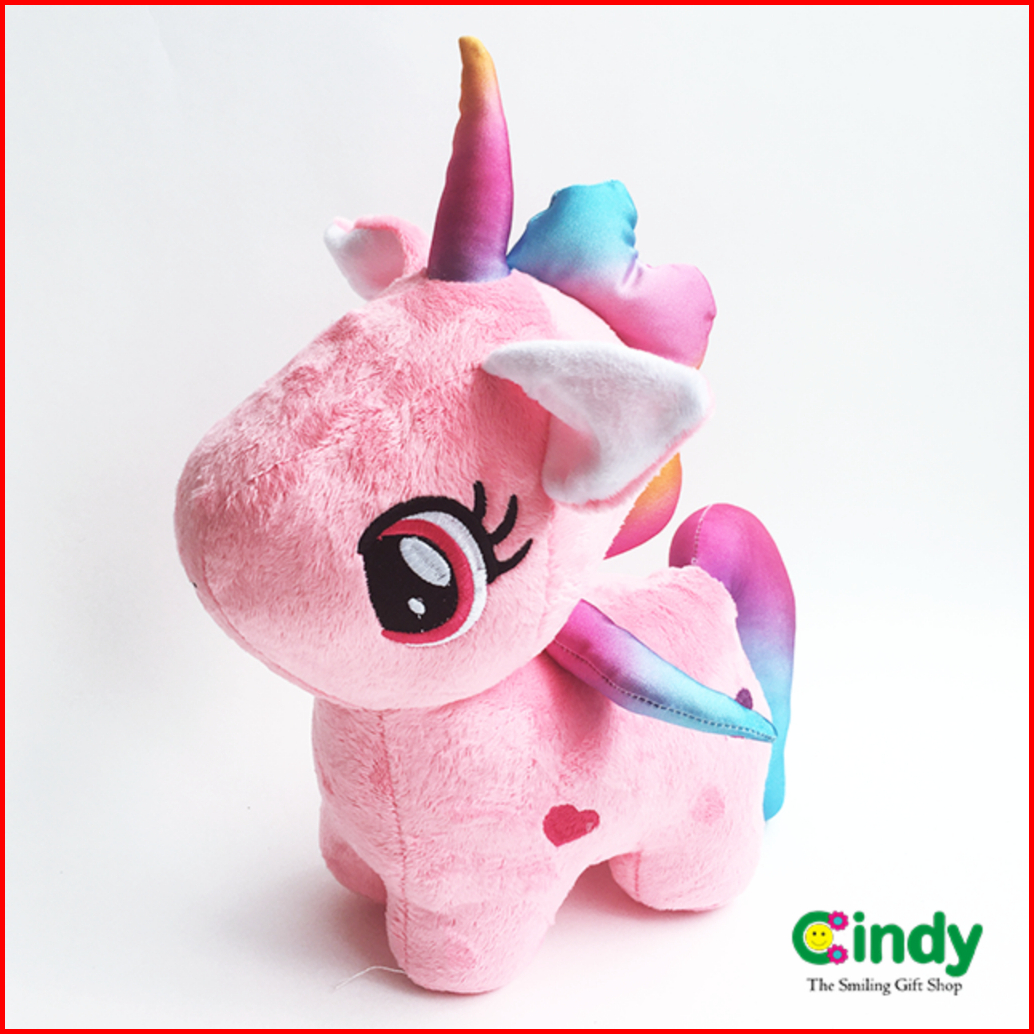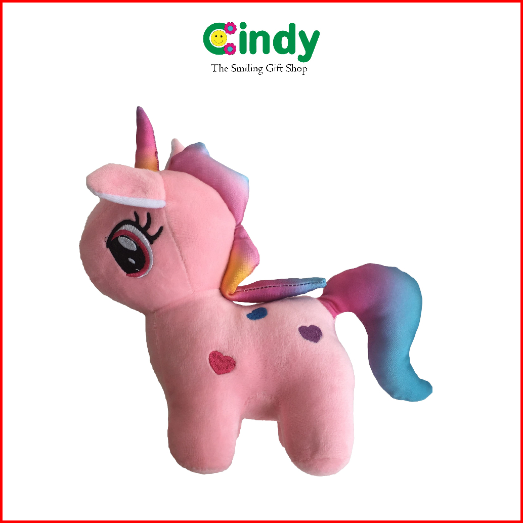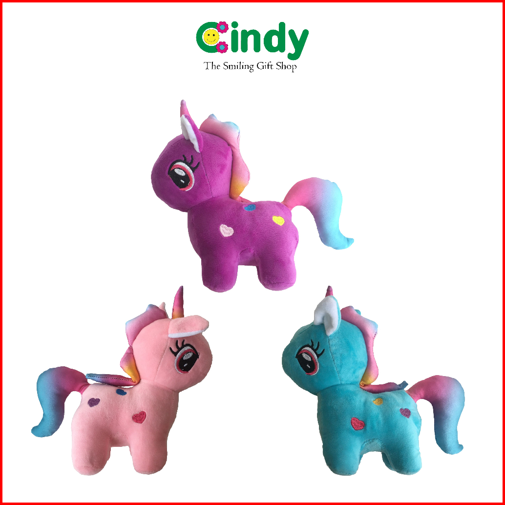 Cindy Boneka Unicorn Rainbow - Mainan Boneka Karakter Kuda Poni Ekor Pelangi Bordir Love - Cbk0111