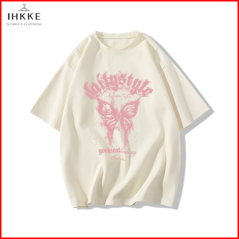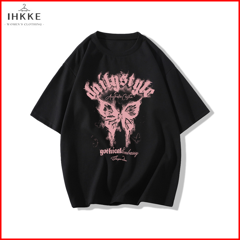 Ihkke T Shirt Oversize Fashion Butterfly Kaos Wanita Korean Style Katun Murni 100 Cotton