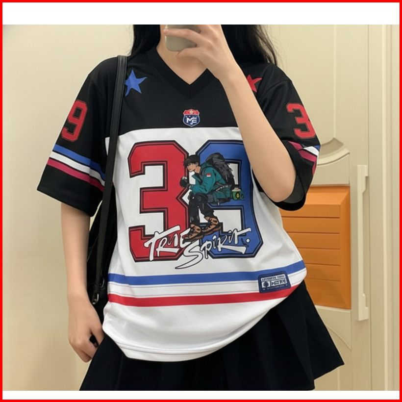 Baju Jersey Combi Hitam 68 Streetwear Oversize Number Premium