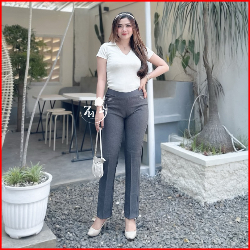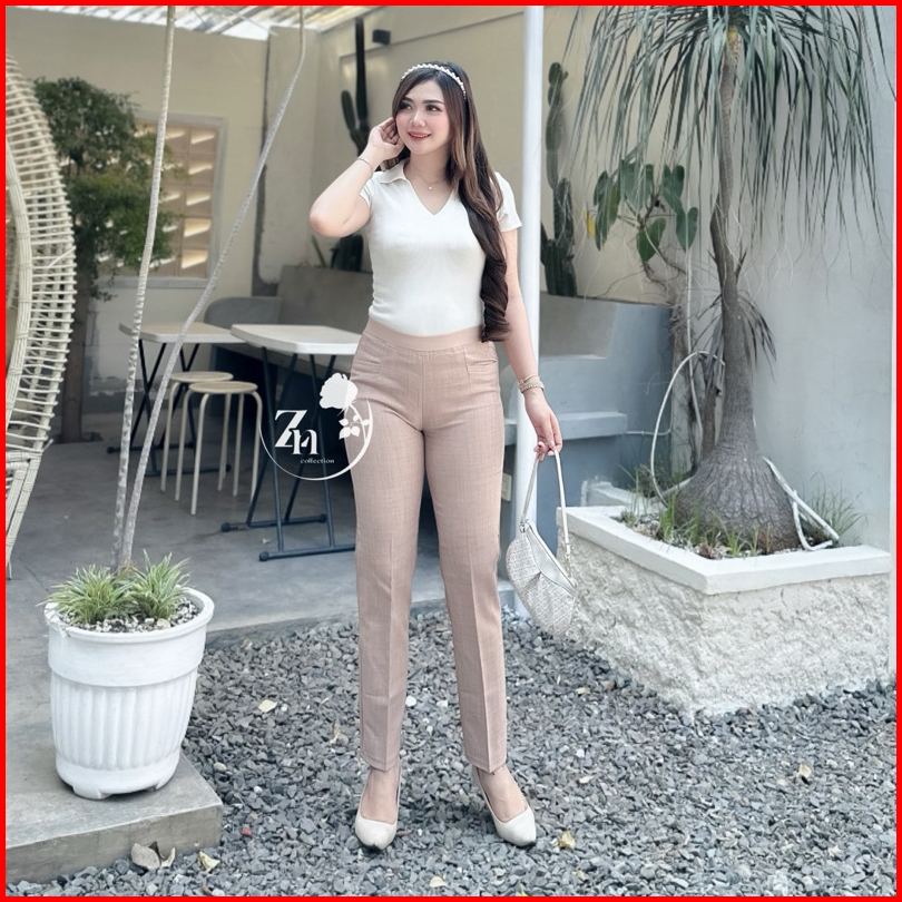 Celana Kantor Wanita Premium Nyaman Pinggang Karet Bahan Melar. Celana Kerja Highwaish Kulot Polos Hitam Panjang