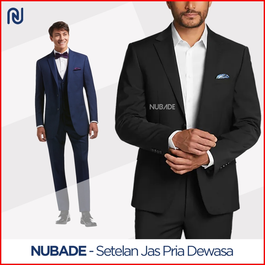 Nubade - Jas Blazer Wisuda Pria Formal Polos Warna Hitam Navy