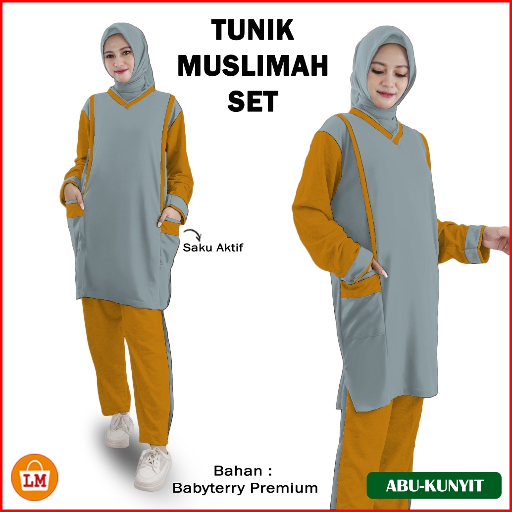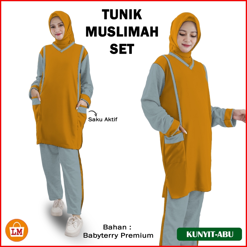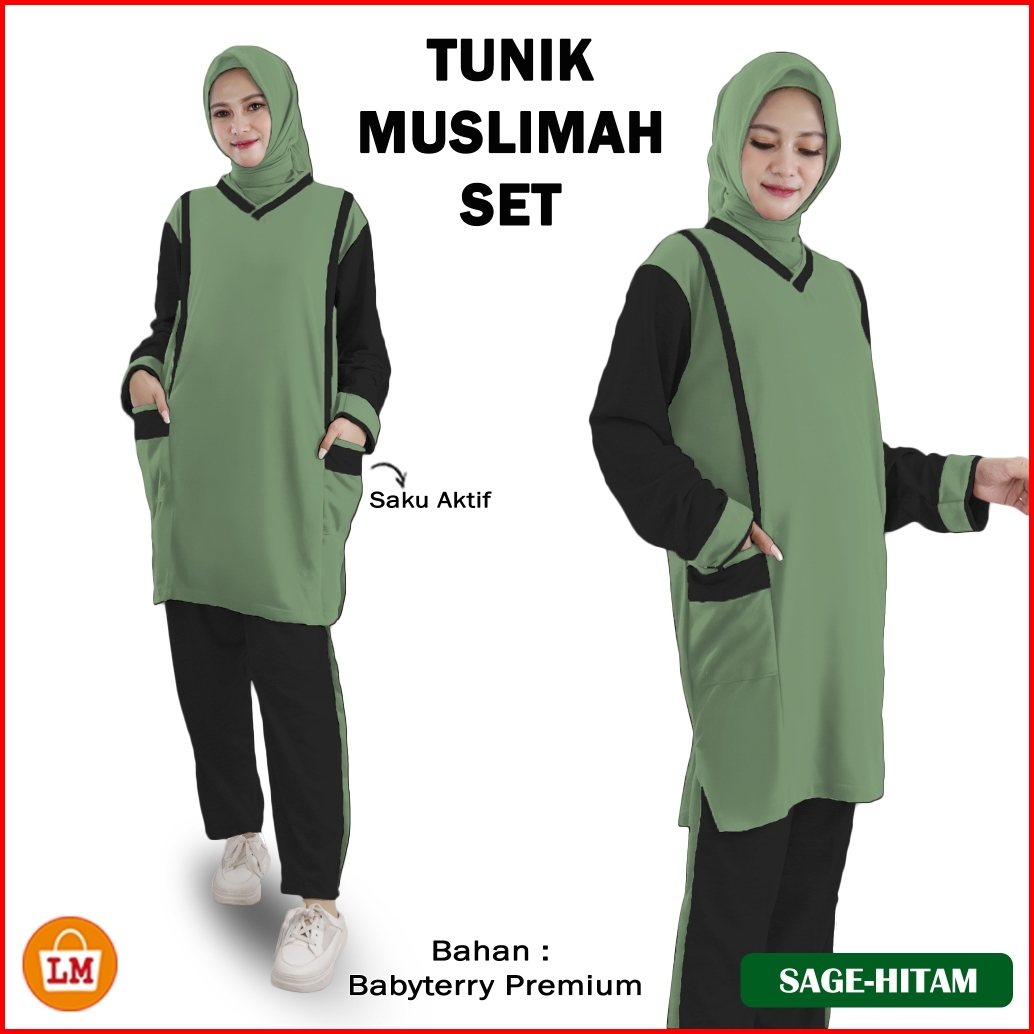 Tunik Muslimah Set Setelan Training Olahraga Senam Zumba Wanita Baju Celana Bahan Babyterry Premium Size Xl Xxl Xxxl 175